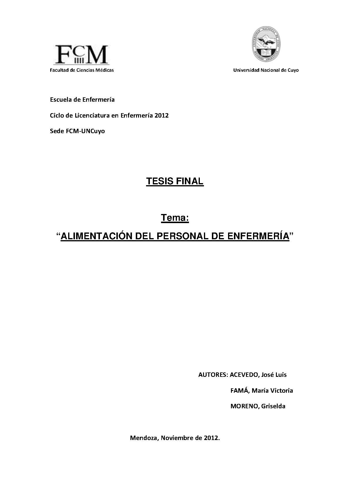 Universidad Nacional de Cuyo. Facultad de Ciencias Médicas. Escuela de Enfermería.
