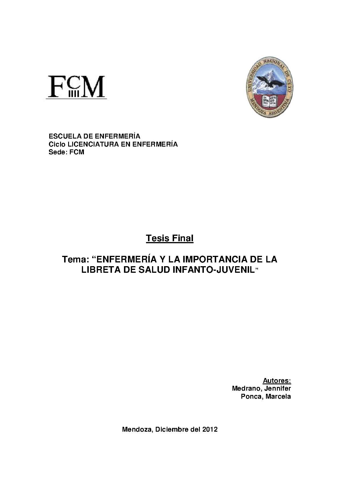 Universidad Nacional de Cuyo. Facultad de Ciencias Médicas. Escuela de Enfermería.