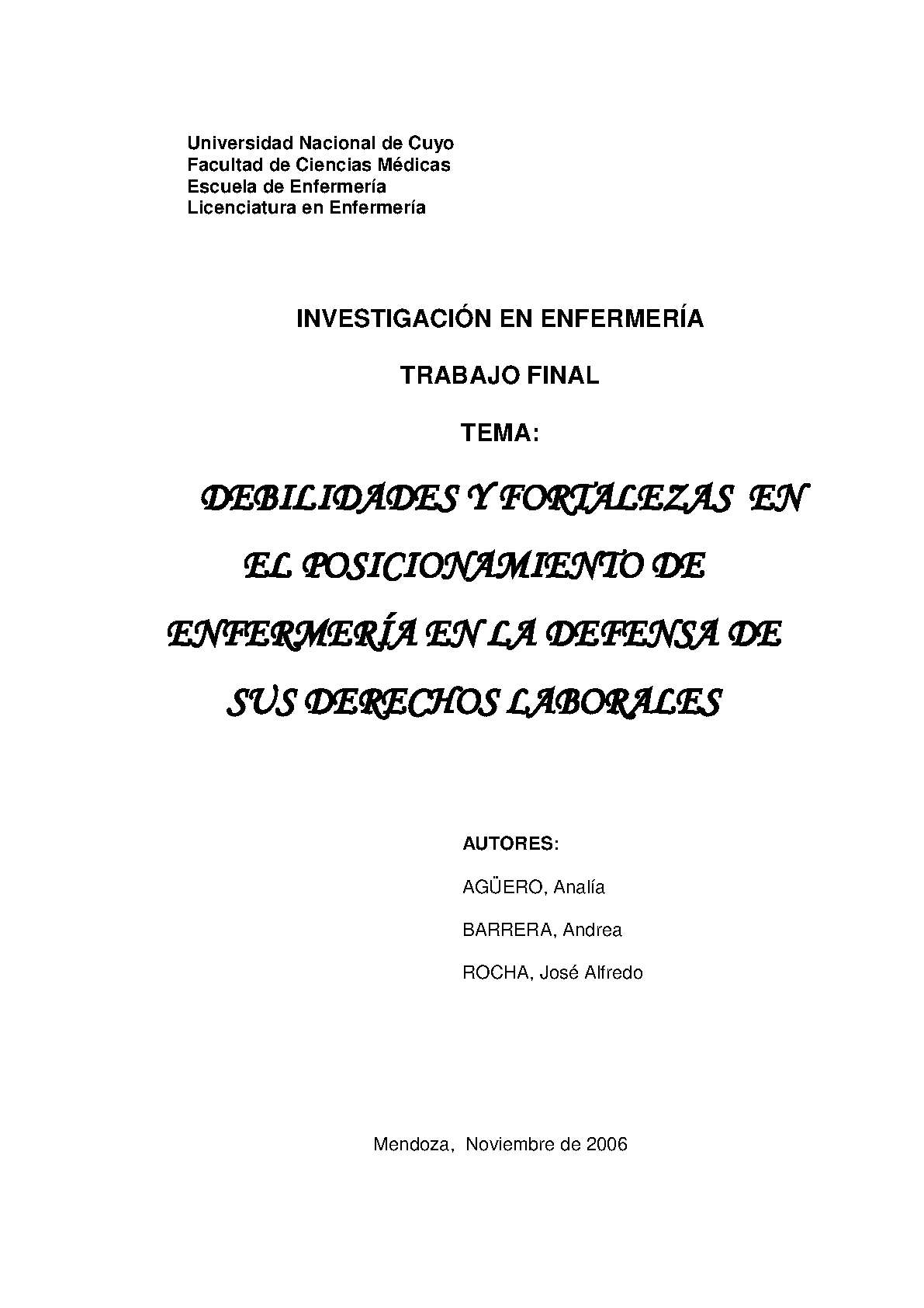 Universidad Nacional de Cuyo. Facultad de Ciencias Médicas. Escuela de Enfermería.