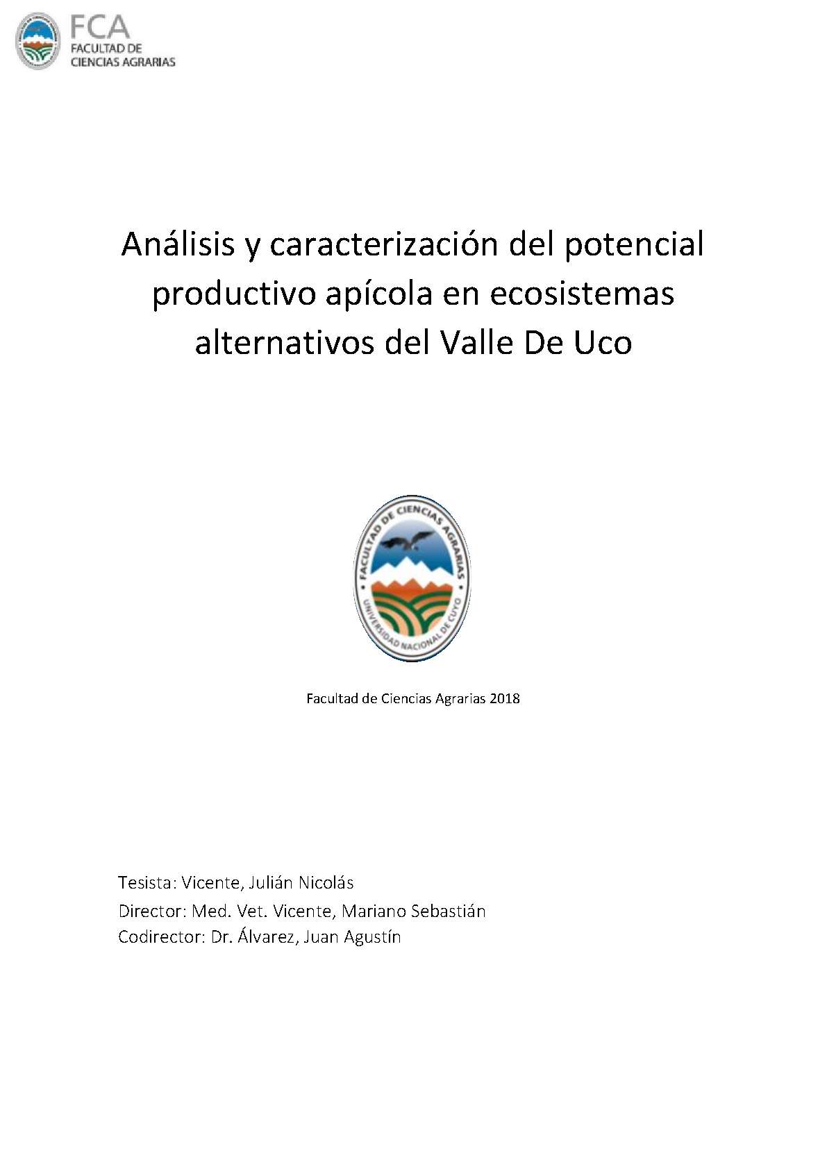 Análisis y caracterización del potencial productivo apícola en ecosistemas alternativos del Valle de Uco