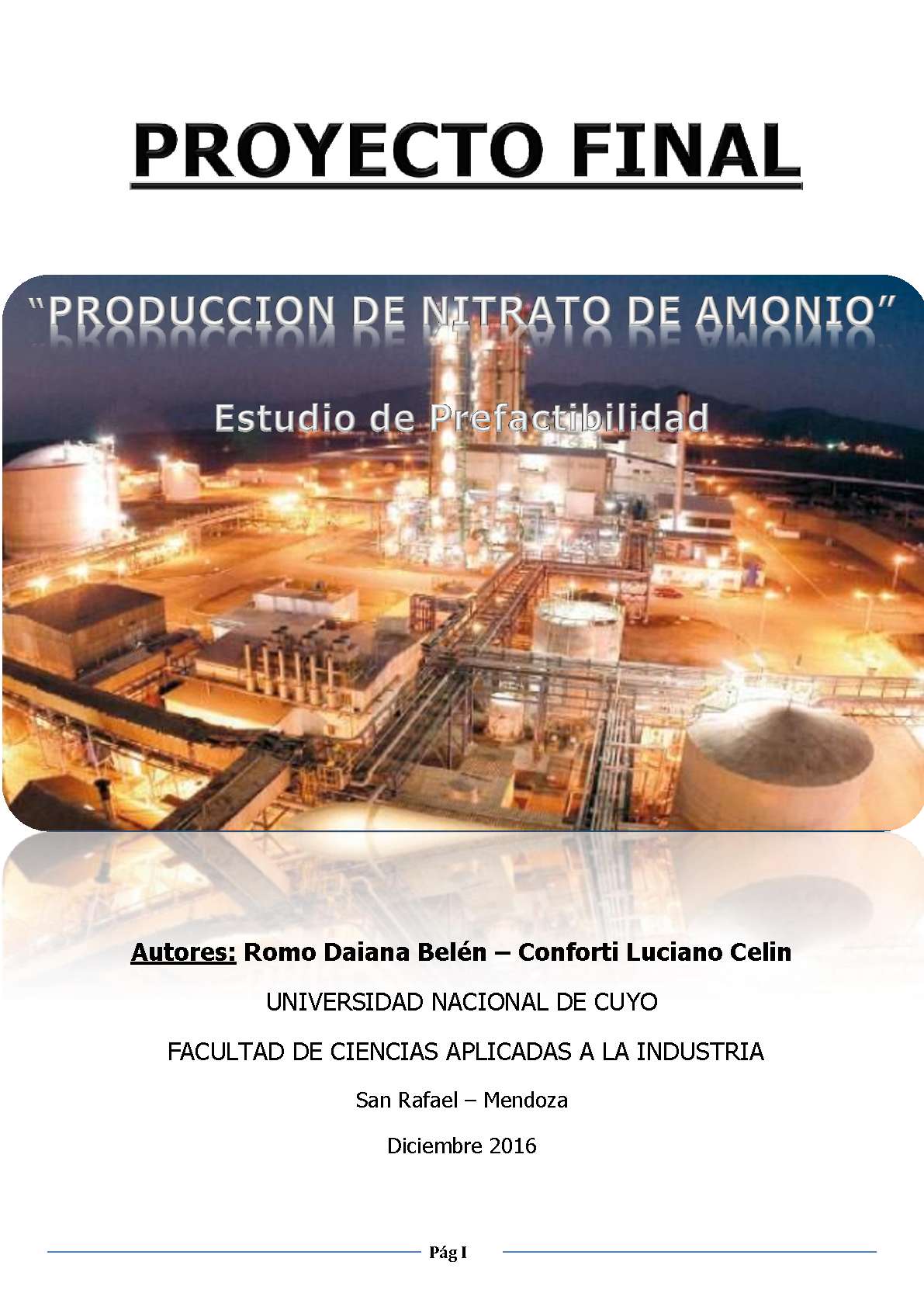 Romo, Daiana; Conforti, Luciano. (2016). Producción de nitrato de amonio: estudio de prefactibilidad (Trabajo final de grado). Mendoza, Universidad Nacional de Cuyo. Facultad de Ciencias Aplicadas a la Industria .