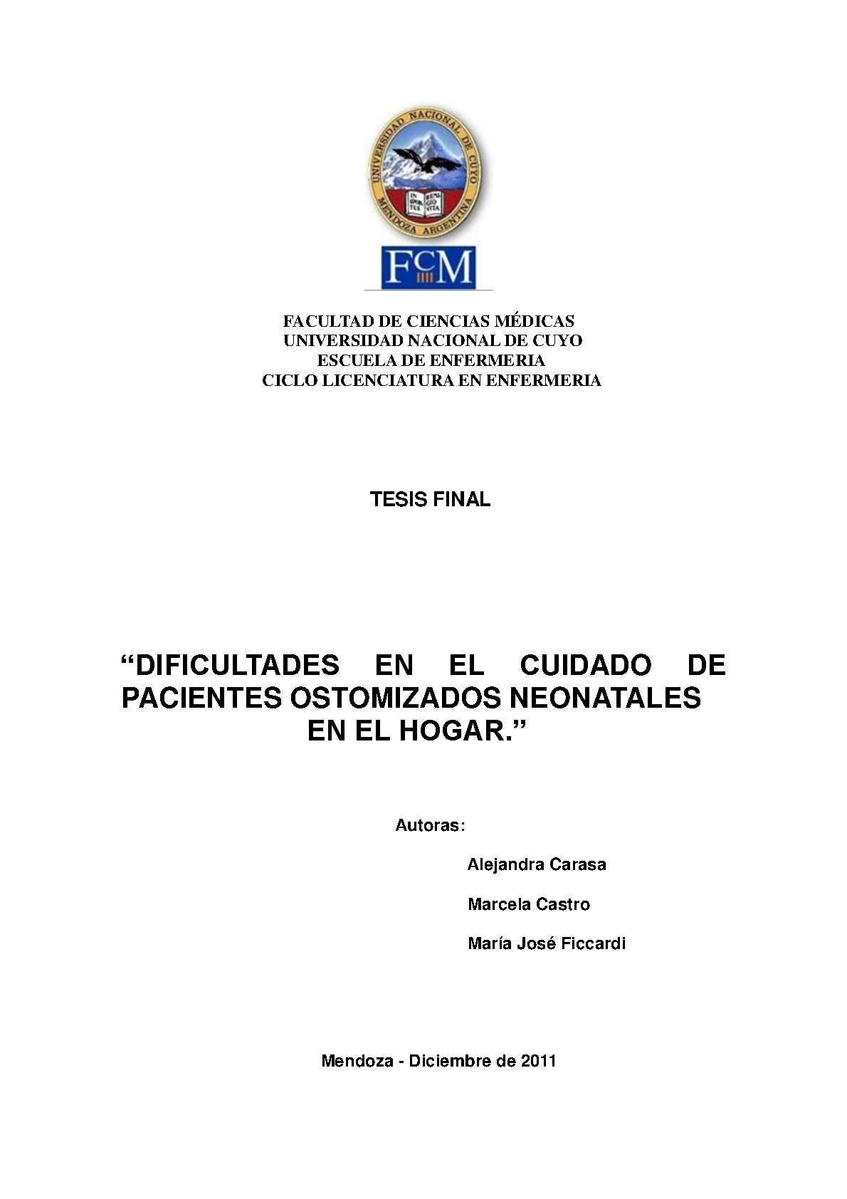Universidad Nacional de Cuyo. Facultad de Ciencias Médicas. Escuela de Enfermería.