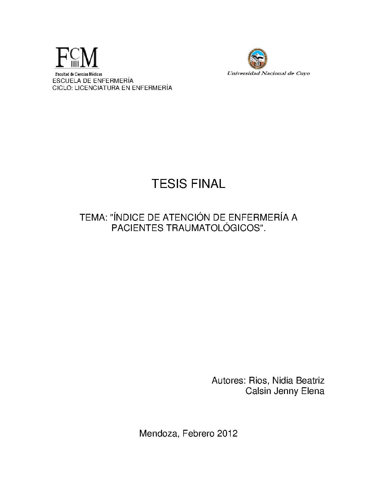 Universidad Nacional de Cuyo. Facultad de Ciencias Médicas. Escuela de Enfermería.