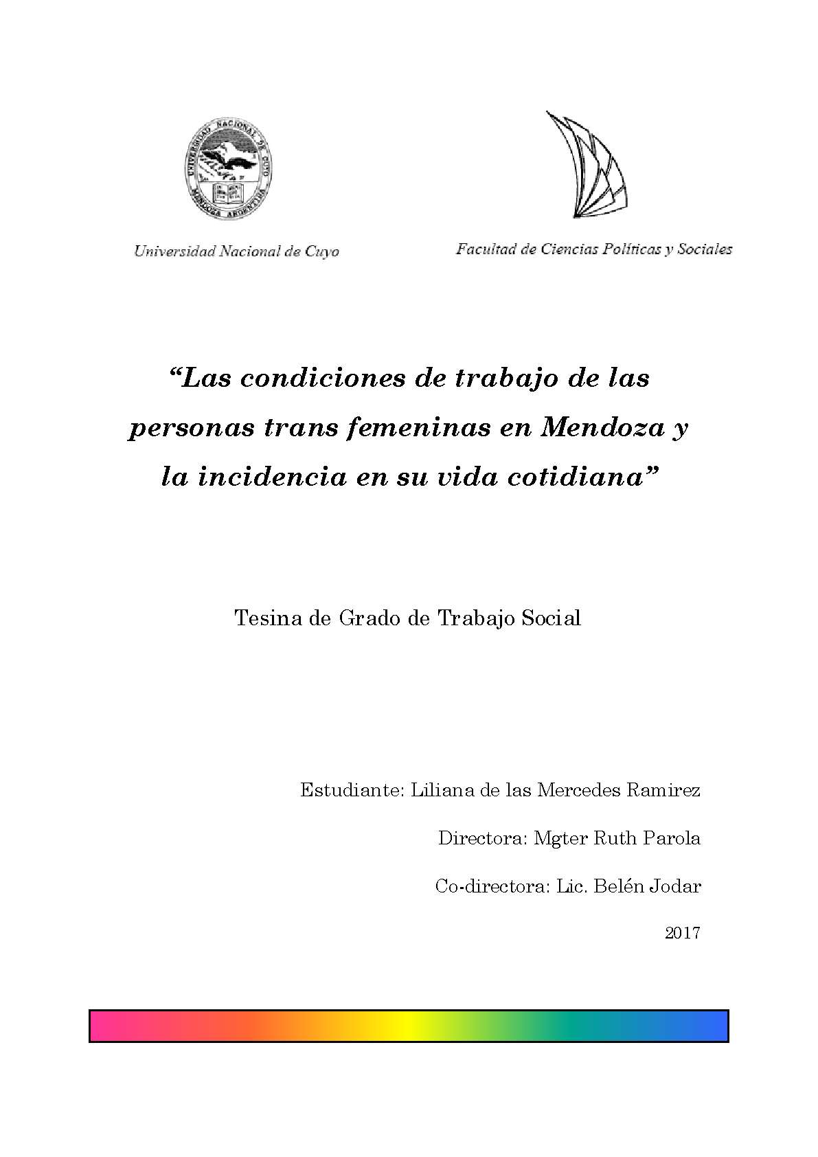 Las condiciones de trabajo de las personas trans femeninas en Mendoza y la incidencia en su vida cotidiana