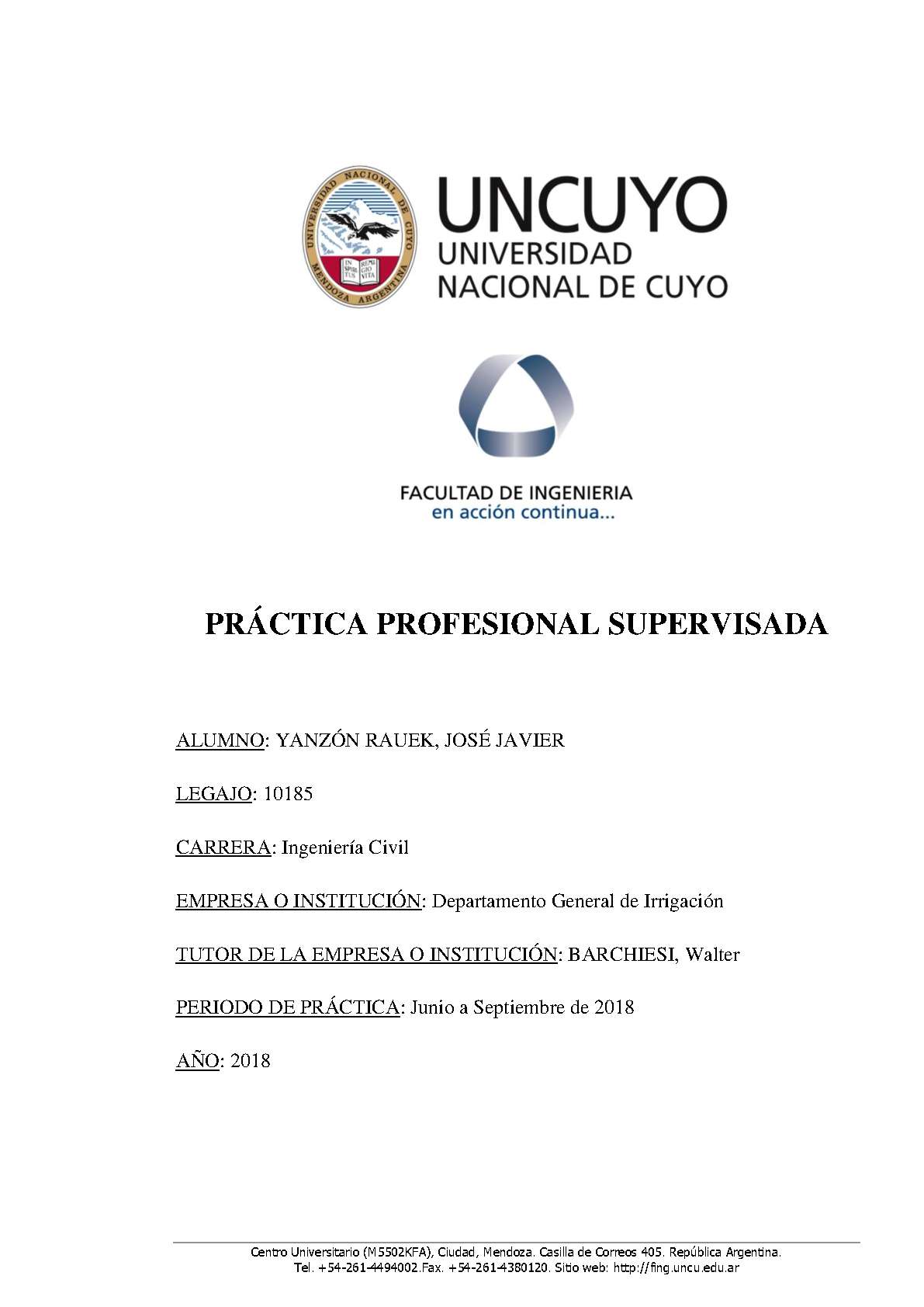 Institución: Universidad Nacional de Cuyo. Facultad de Ingeniería