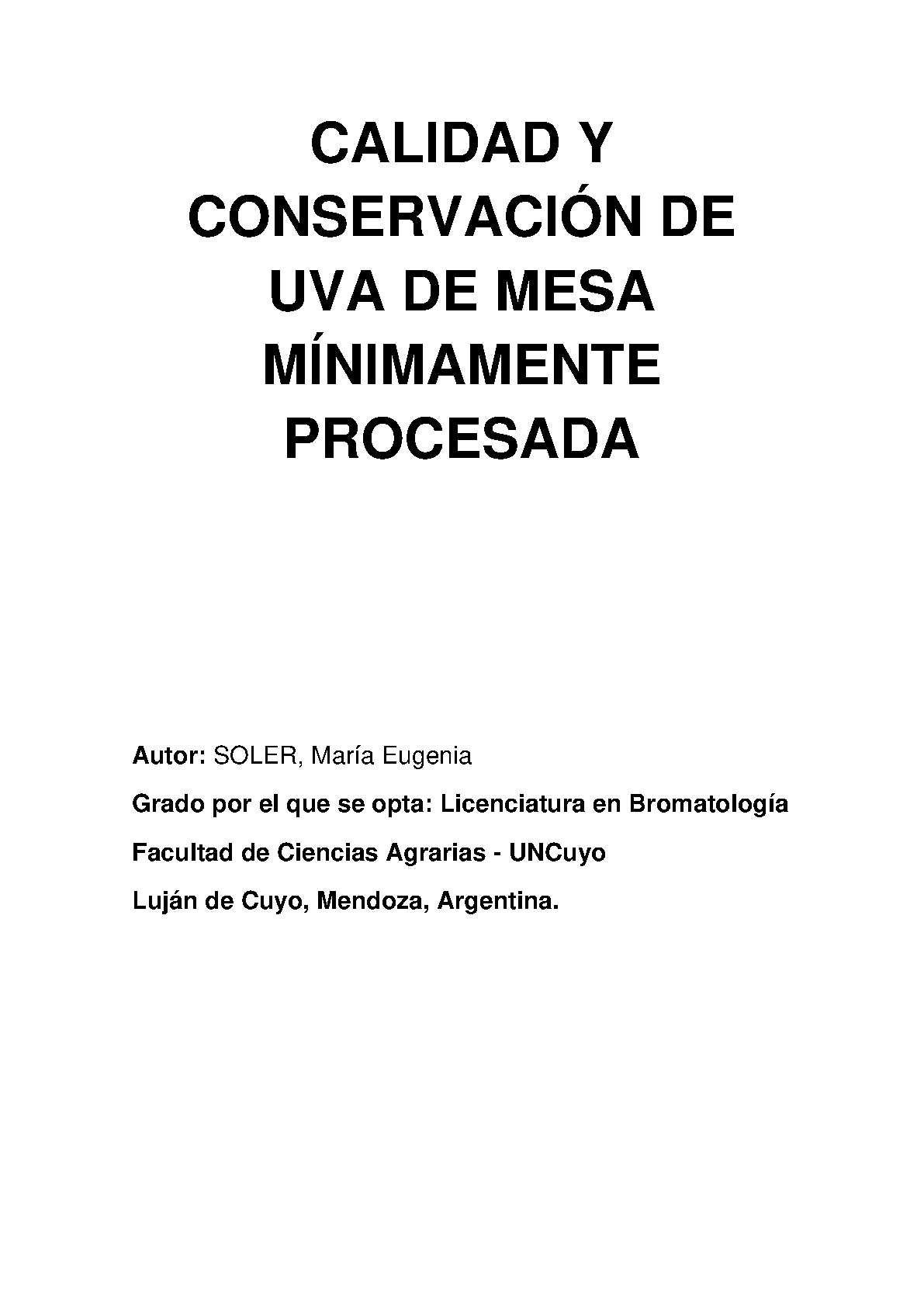 UVA - CALIDAD DEL PRODUCTO - UVAS DE MESA - CALIDAD DE CONSERVACIÓN - PROPIEDADES ORGANOLÉPTICAS - MENDOZA (ARGENTINA : PROVINCIA) - PROCESAMIENTO DE ALIMENTOS - MEJORAMIENTO GENÉTICO - BAYAS - ENVASADO - ALIMENTOS MÍNIMAMENTE PROCESADOS - EVALUACIÓN SENSORIAL DE LOS ALIMENTOS - VINIFICACIÓN