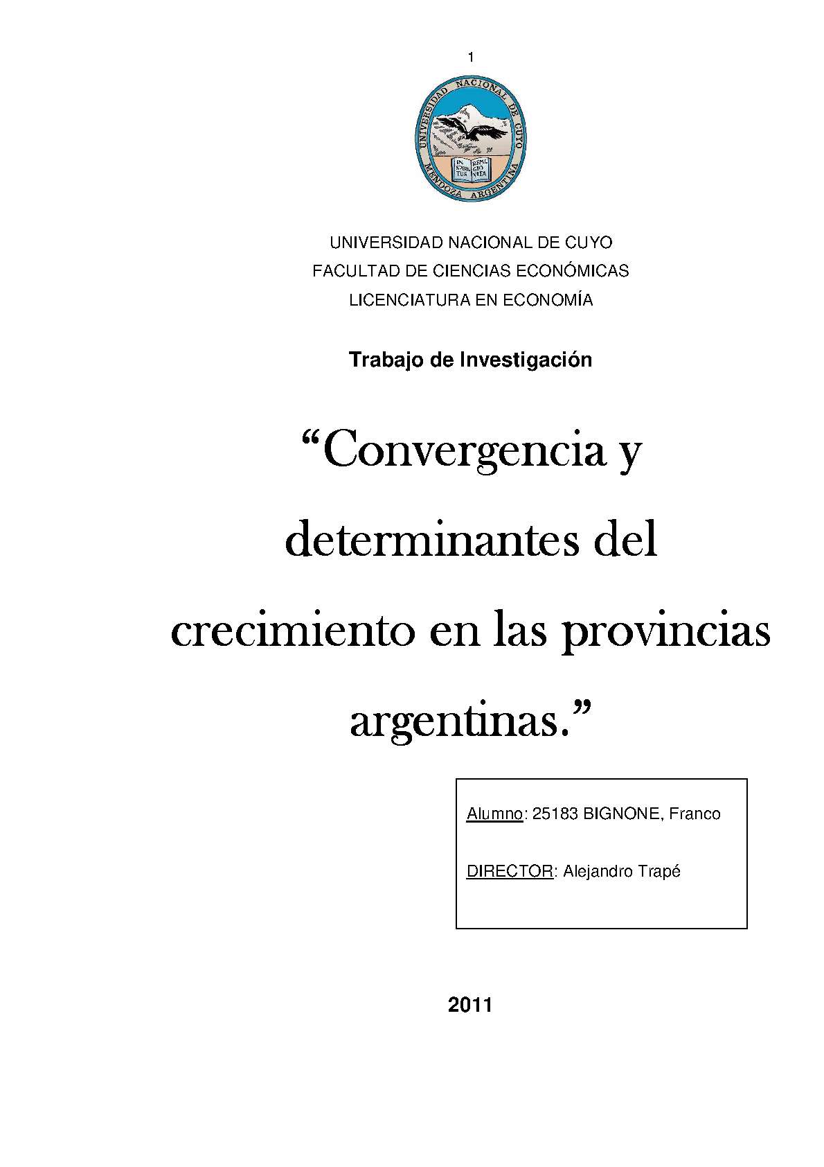 Convergencia y determinantes del crecimiento en las provincias argentinas