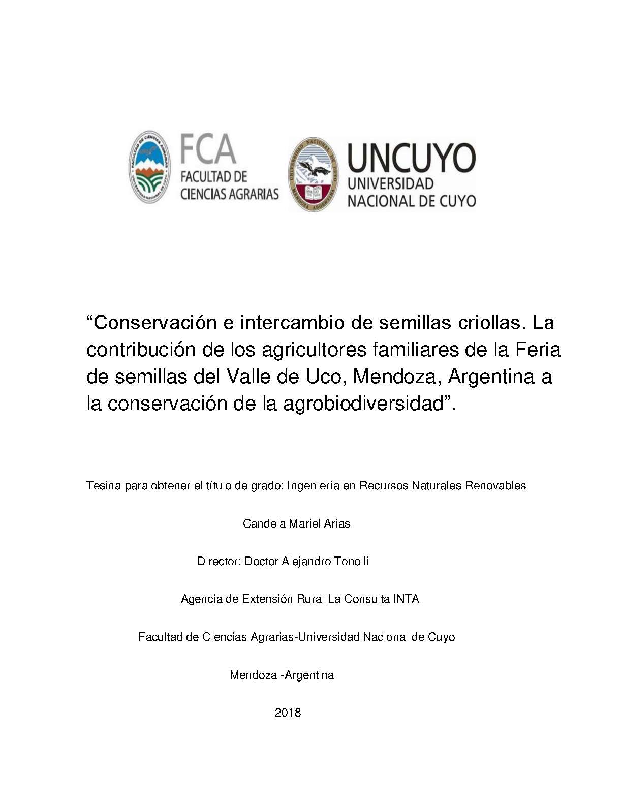 del Valle de Uco y residen en dicho lugar, a la conservación de la agrobiodiversidad. Para alcanzar dicho objetivo, en La Feria de Intercambio de Semillas y Saberes, llevada a cabo durante el año 2017, se identificaron 10 agricultores familiares que conservan semillas. Los mismos fueron catalogados como informantes claves (mayor conocimiento y experiencia sobre conservación de semillas) y posteriormente fueron entrevistados.