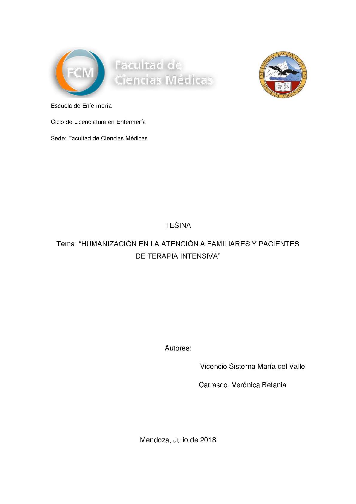 SATISFACCIÓN DEL PACIENTE - CUIDADOS CRÍTICOS - HUMANIZACIÓN DE LA ATENCIÓN - CALIDAD DE ATENCIÓN DE SALUD - RELACIONES PROFESIONAL-FAMILIA - RELACIONES ENFERMERO-PACIENTE - COMUNICACIÓN EN SALUD - HOSPITAL REGIONAL MALARGÜE (MALARGÜE, MENDOZA, ARGENTINA)
