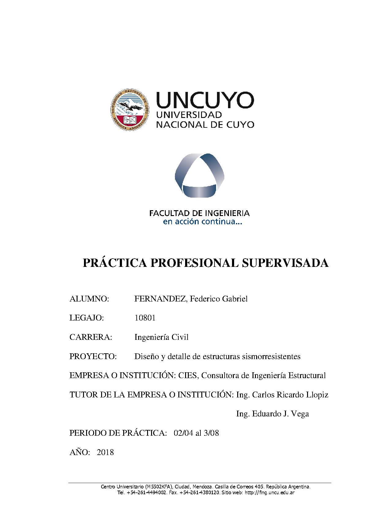 Fernández, Federico Gabriel. (2018). Diseño y detalle de estructuras sismorresistentes: (Práctica Profesional Supervisada). Mendoza, Universidad Nacional de Cuyo. Facultad de Ingeniería .