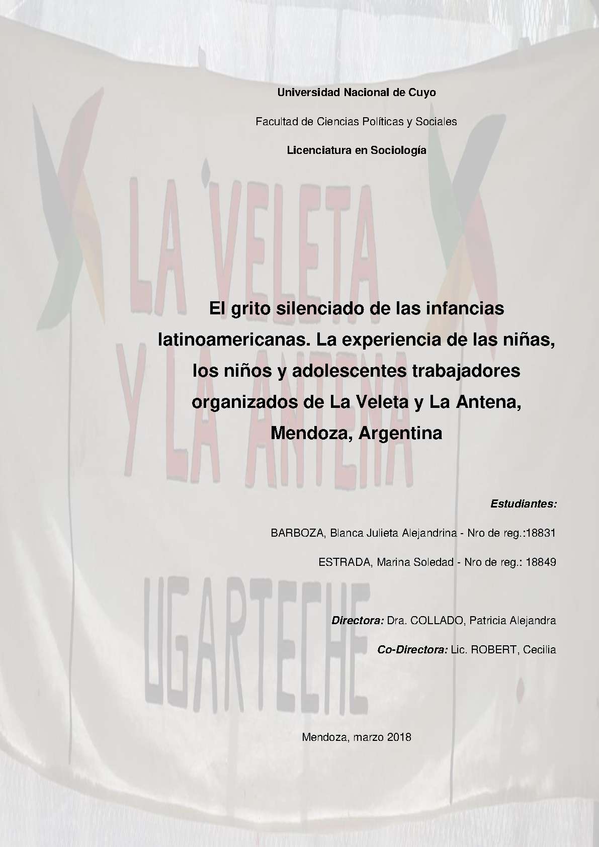 la experiencia de las niñas, los niños y adolescentes trabajadores organizados de La Veleta y La Antena, Mendoza, Argentina