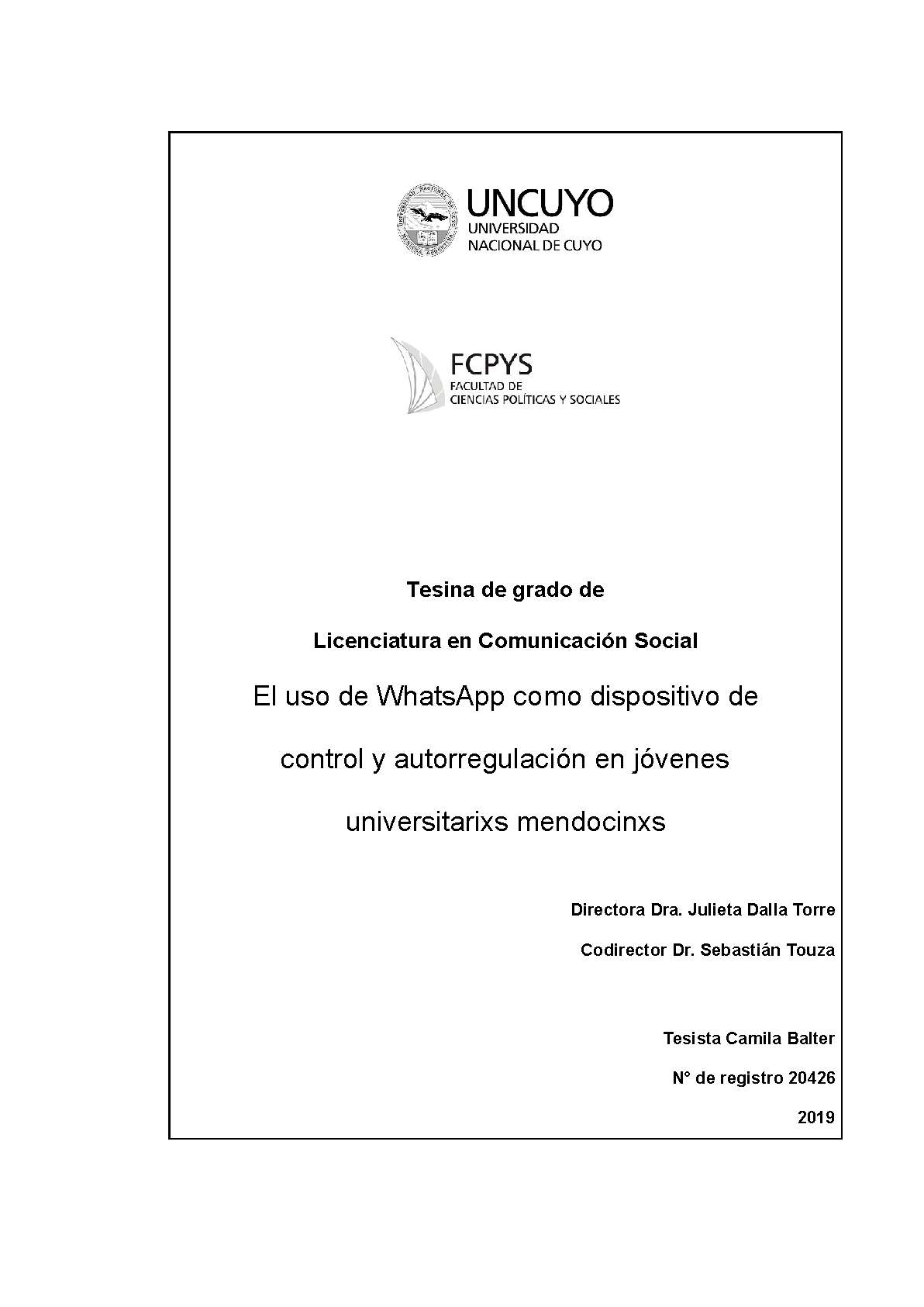 El uso de whatsapp como dispositivo de control y autorregulación en jóvenes universitarixs mendocinxs