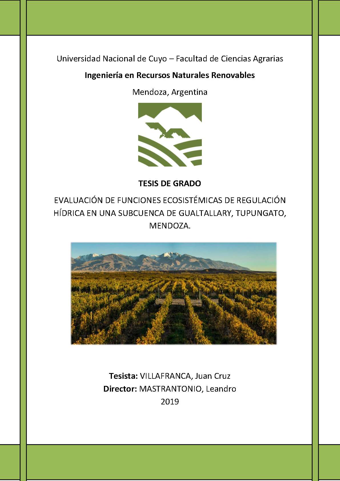 Evaluación de funciones ecosistémicas de regulación hídrica en una subcuenca de Gualtallary, Tupungato, Mendoza