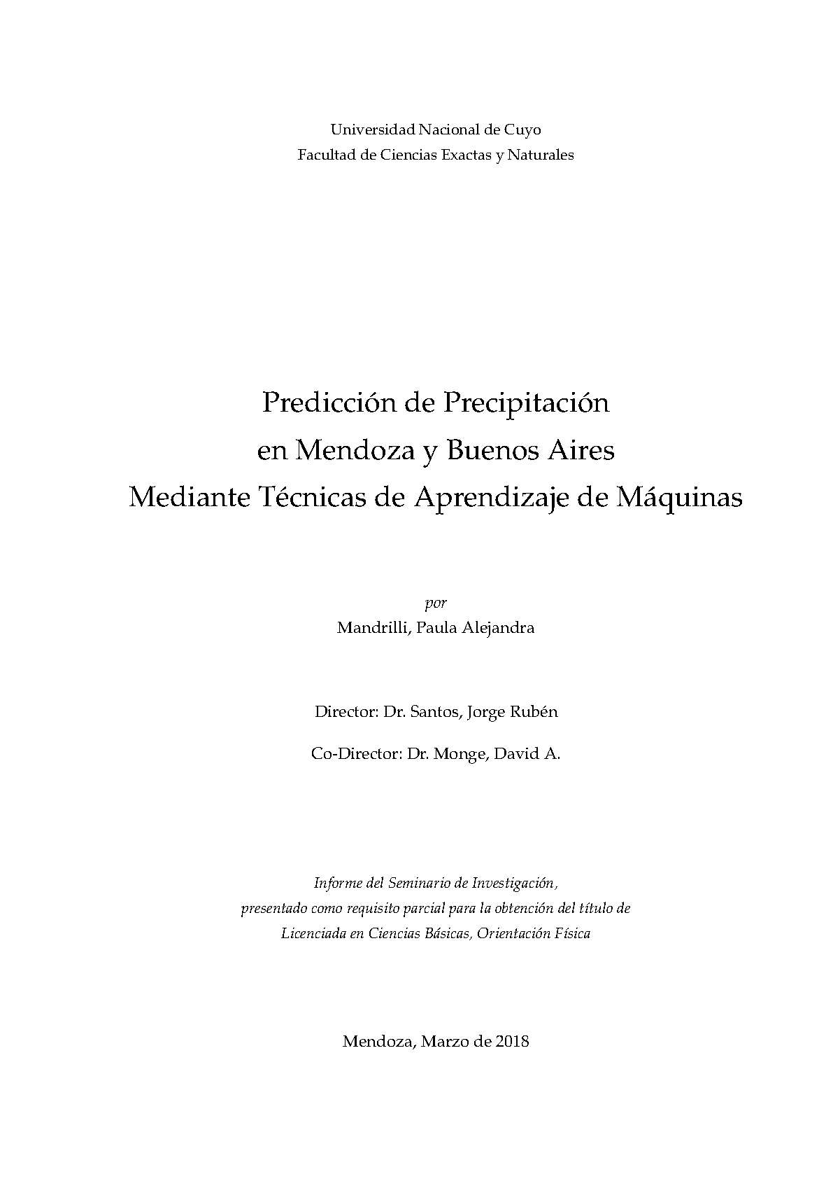 Predicción de precipitación en Mendoza y Buenos Aires mediante técnicas de aprendizaje de máquinas