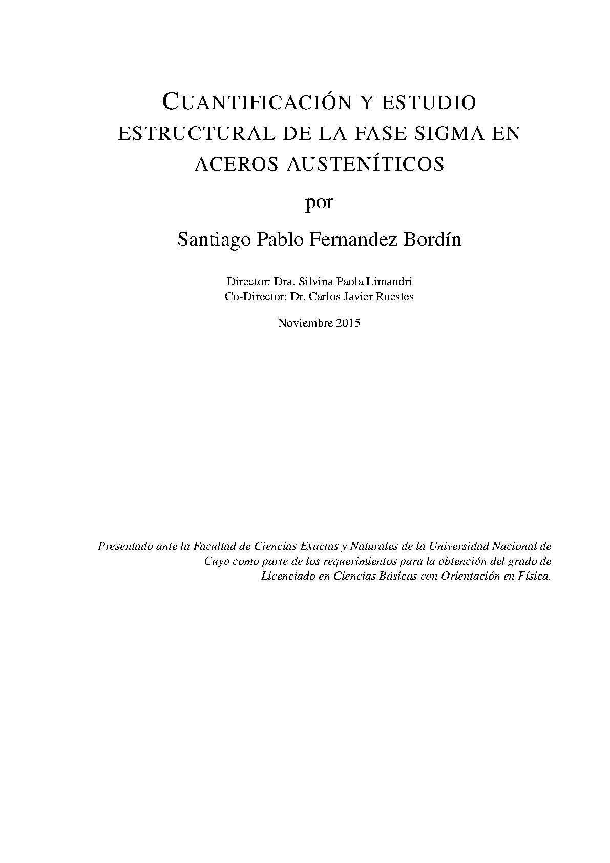 Fernandez Bordín, Santiago Pablo. (2015). Cuantificación y estudio estructural de la fase sigma en aceros austeníticos: (Tesina de grado). Mendoza, Universidad Nacional de Cuyo. Facultad de Ciencias Exactas y Naturales.