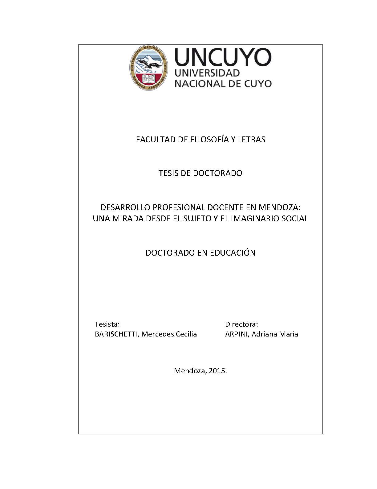 Barischetti, Mercedes . (2015). Desarrollo profesional docente en Mendoza: una mirada desde el sujeto y el imaginario social (Tesis de Doctorado). Mendoza, Universidad Nacional de Cuyo. Facultad de Filosofía y Letras .
