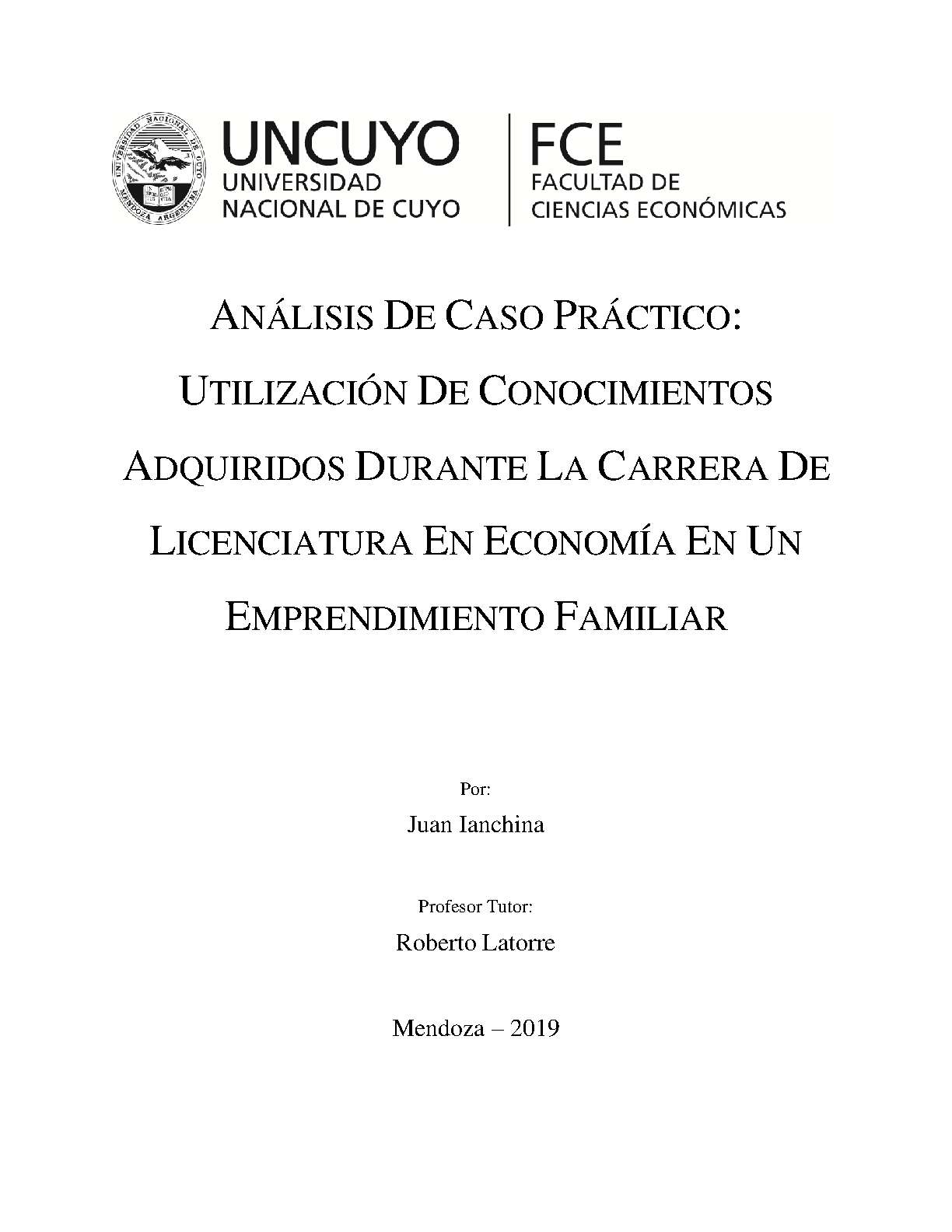 Ianchina, Juan Fernando. (2019). Análisis de caso práctico: utilización de conocimientos adquiridos durante la carrera de Licenciatura en Economía en un emprendimiento familiar (Tesina de grado). Mendoza, .