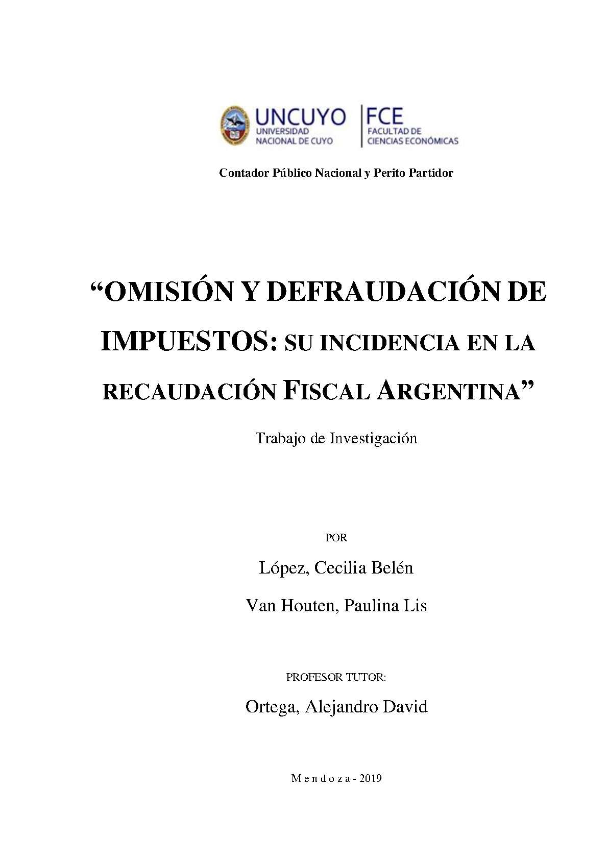 En la primer parte se llevará a cabo un análisis teórico del tema a tratar, definiendo los conceptos a utilizar durante el desarrollo del trabajo de investigación. Además, se expondrán consideraciones generales relacionadas al tema. Luego en la segunda parte del trabajo, se hará mención de aquellos ilícitos tributarios existentes y su clasificación, para luego introducirnos en la investigación y análisis de las causas de la omisión y defraudación de impuestos, donde se mencionarán posibles soluciones al caso planteado. A continuación, se explicarán las sanciones establecidas por la Ley 11.683 de Procedimiento Tributario para las distintas infracciones fiscales cometidas por contribuyentes. Posteriormente, profundizaremos desarrollando los efectos que produce la falta de pago de impuestos por parte de los contribuyentes sobre la recaudación fiscal y la economía de Argentina y también, se mencionará cuál es el rol del Contador Público ante estas situaciones. Por último, se concluye con una serie de propuestas de mejora a fin de reducir al máximo posible el fraude en el país para que el Estado pueda cumplir adecuadamente con sus fines y además, evitar que los contribuyentes sean sancionados.