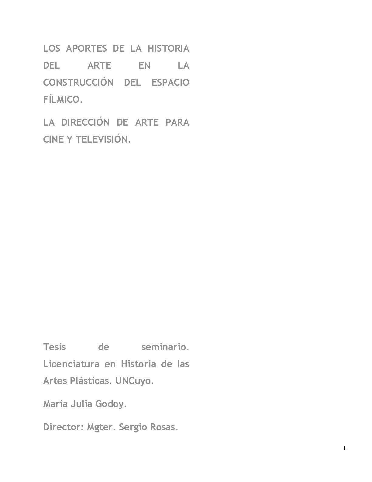 Godoy, María Julia. (2013). Los aportes de la historia del arte en la construcción del espacio fílmico: la dirección de arte para cine y televisión (Tesina de grado). Mendoza, Universidad Nacional de Cuyo. Facultad de Artes y Diseño .