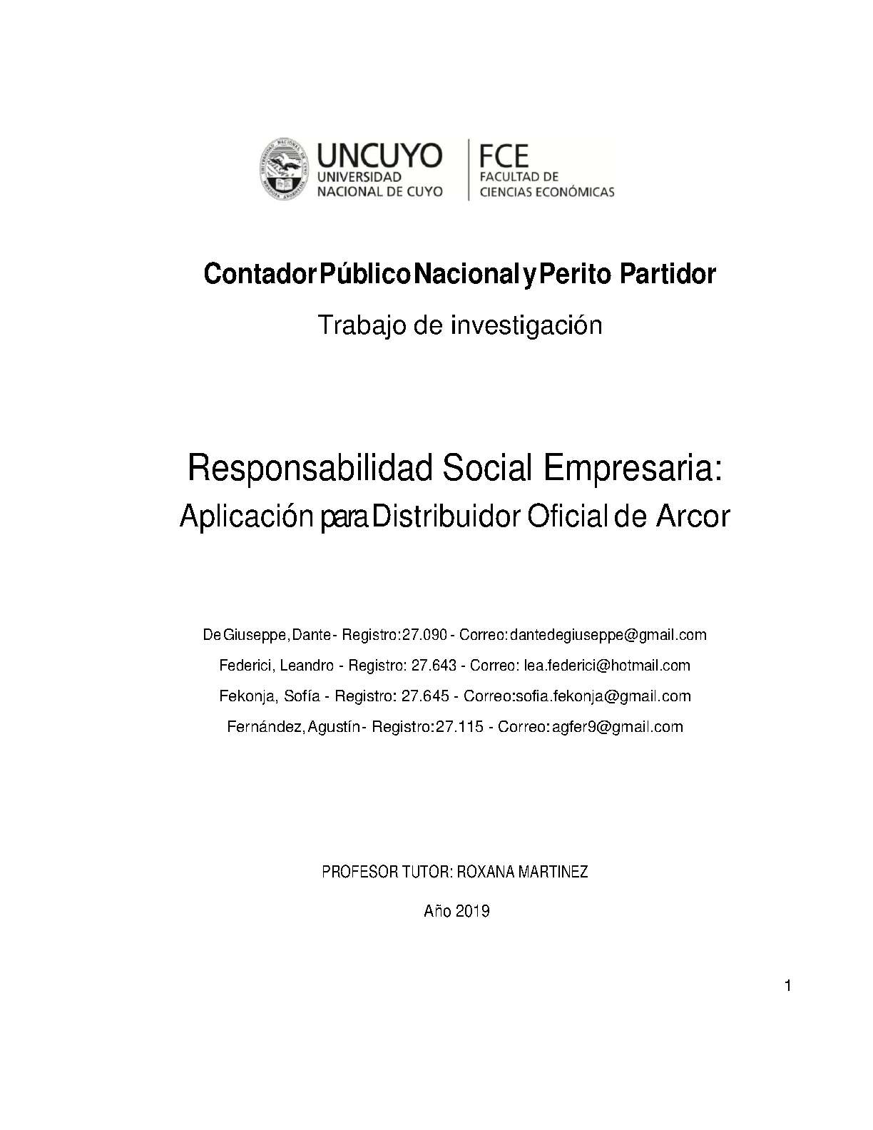 De Giuseppe, Dante; Federici, Leandro; Fekonja, Sofía; Fernández, Agustín. (2019). Responsabilidad social empresaria: aplicación para distribuidor oficial de Arcor (Tesina de grado). Mendoza, Universidad Nacional de Cuyo. Facultad de Ciencias Económicas.