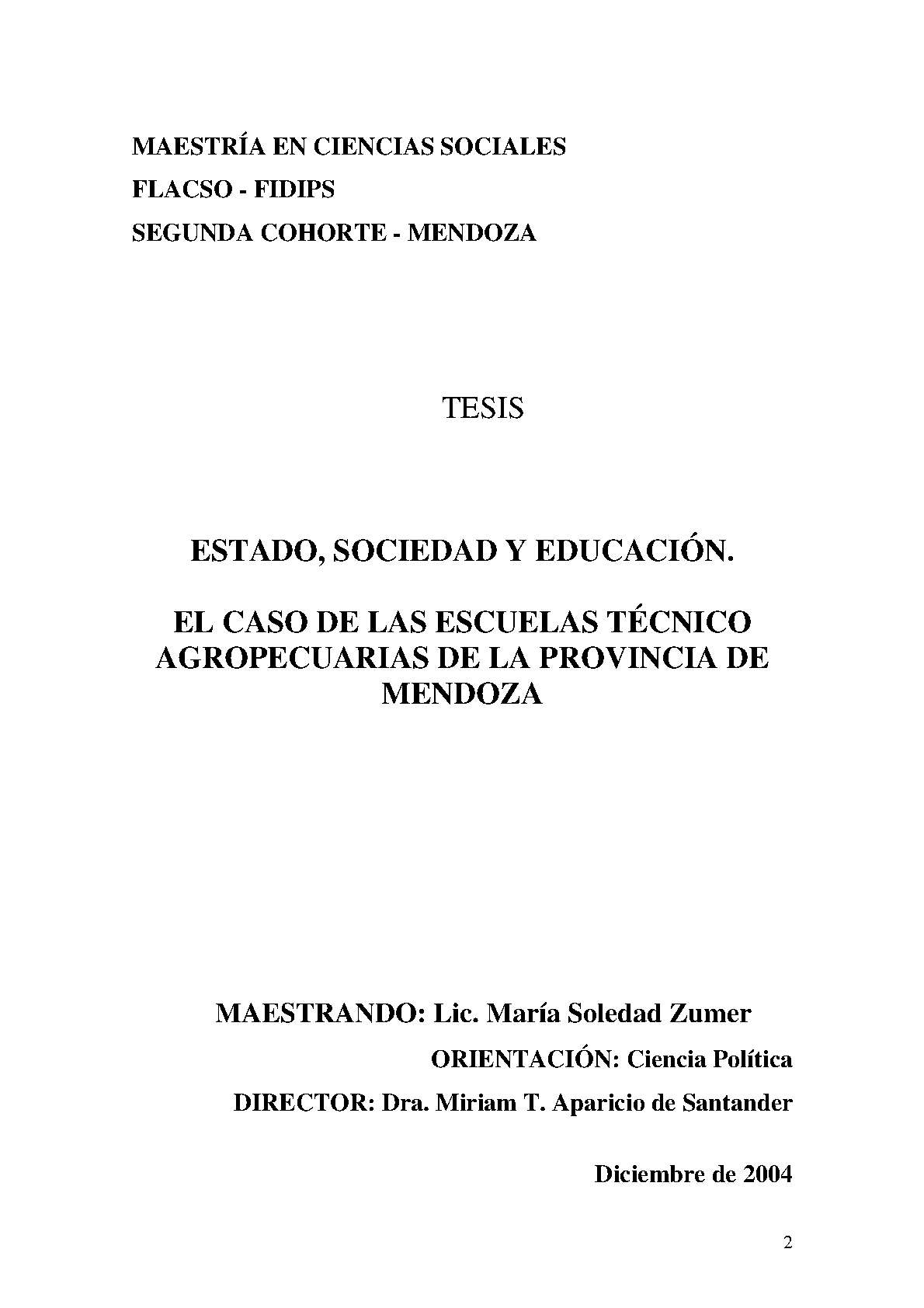 Partiendo de la hipótesis que afirma que existen una serie de falencias que disminuyen la calidad de la educación impartida por las escuelas técnico agropecuarias de Mendoza, que pueden ser subsanadas a través de la implementación de mecanismos de cooperación entre el Estado, las organizaciones sociales y los establecimientos educacionales, la tesis analiza la realidad de la oferta total de educación técnico agropecuaria de gestión oficial de la provincia, expone su problemática y propone una línea de acción gubernamental destinada a solucionar las dificultades evidenciadas por tales instituciones educativas.