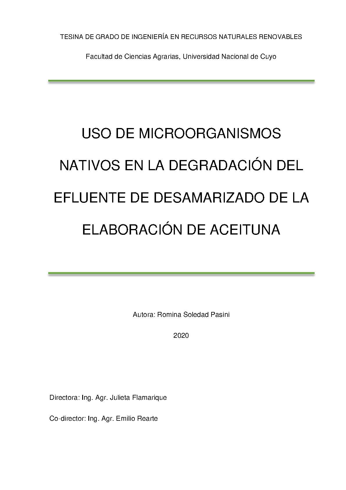 ACEITUNAS - EFLUENTES INDUSTRIALES - MICROORGANISMOS - MENDOZA (ARGENTINA : PROVINCIA) - BIORREMEDIACIÓN - POLIFENOLES