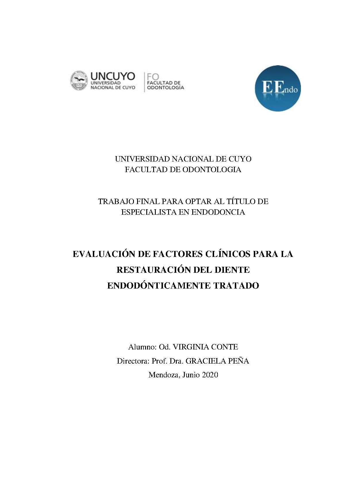 Evaluación de factores clínicos para la restauración del diente endodónticamente tratado