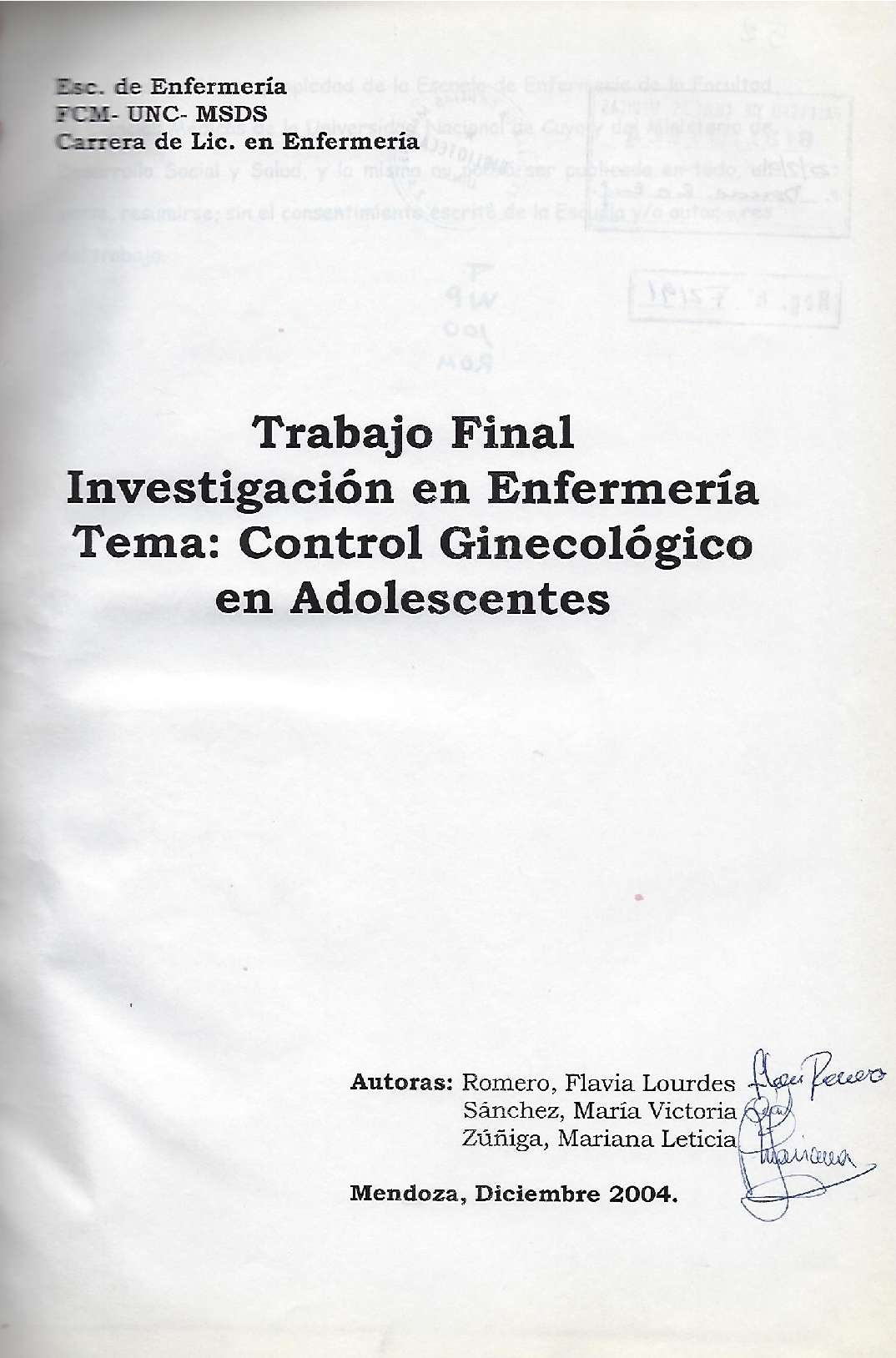 Universidad Nacional de Cuyo. Facultad de Ciencias Médicas. Escuela de Enfermería.