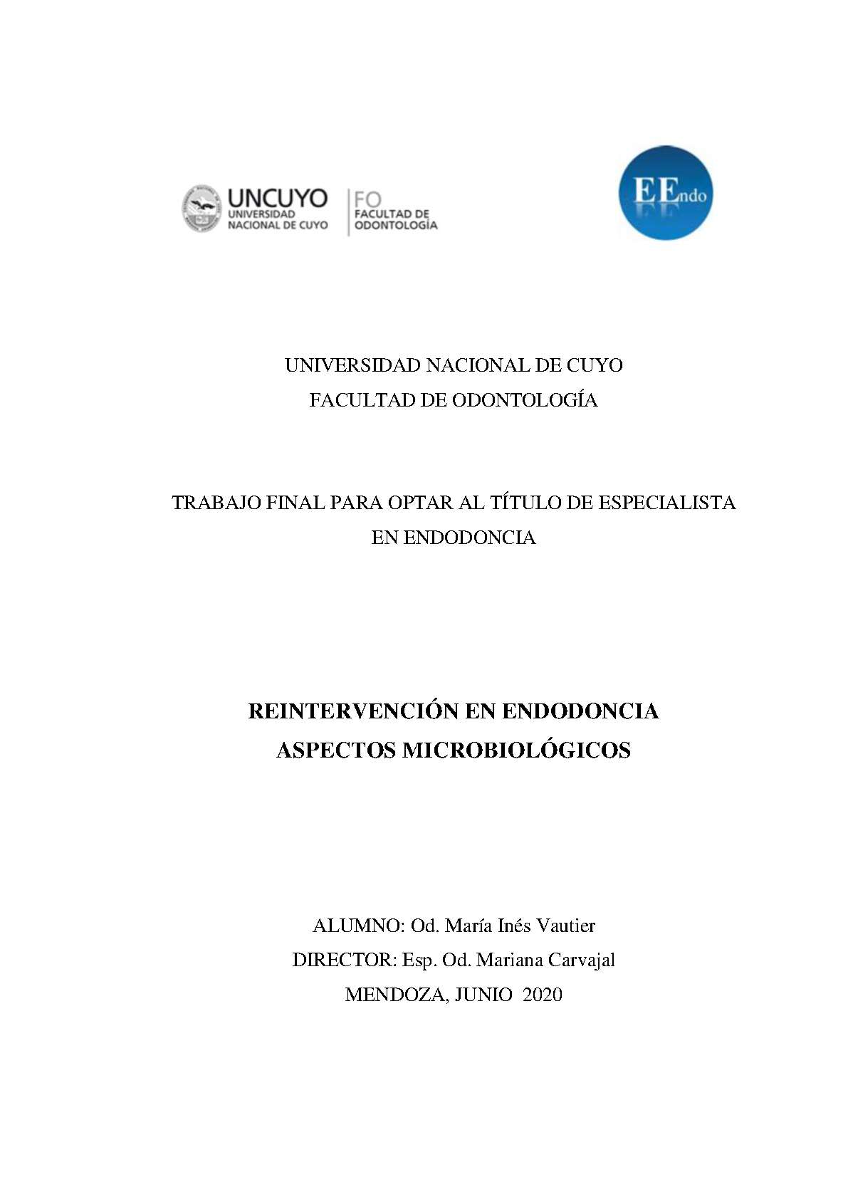 En suma, se propone como objetivo de este trabajo, analizar la recontaminación bacteriana relacionada a los fracasos endodónticos y los procedimientos de reintervención requeridos para su resolución.