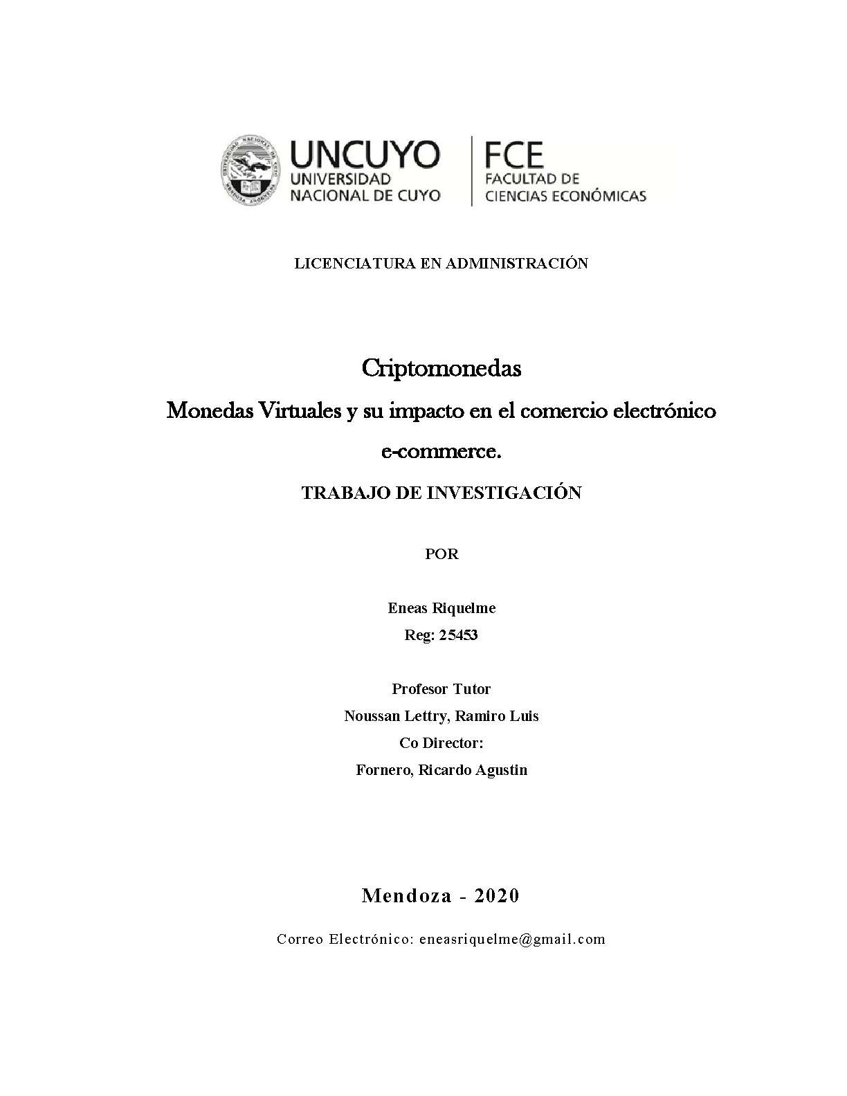 Riquelme, Eneas. (2020). Criptomonedas: monedas virtuales y su impacto en el comercio electrónico e-commerce (Tesina de grado). Mendoza, Universidad Nacional de Cuyo. Facultad de Ciencias Económicas.