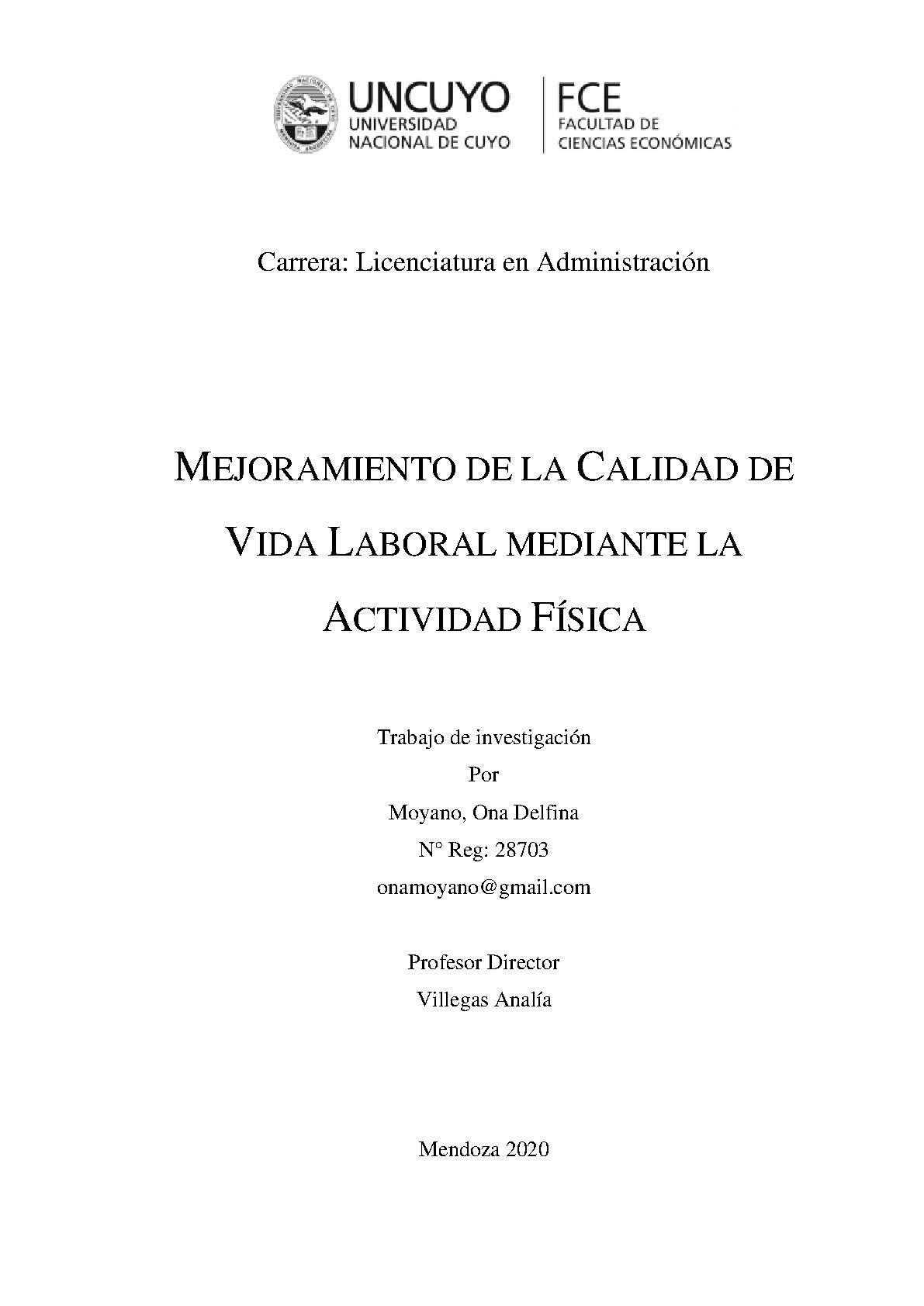 Mejoramiento de la calidad de vida laboral mediante la actividad física