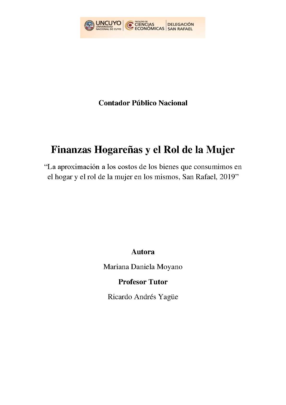 la aproximación a los costos de los bienes que consumimos en el hogar y el rol de la mujer en los mismos : San Rafael : 2019