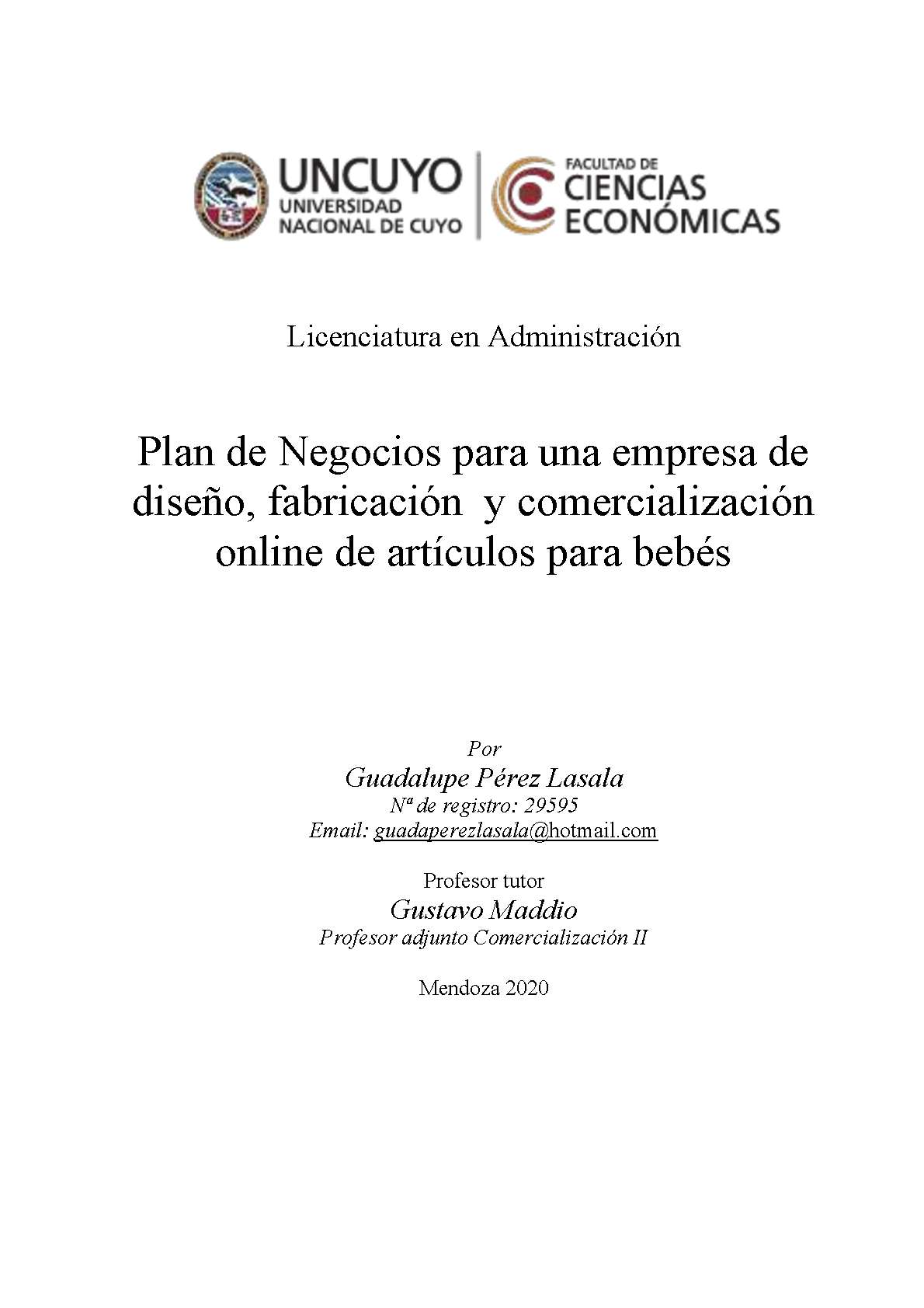 Plan de negocios para una empresa de diseño, fabricación y comercialización online de artículos para bebés