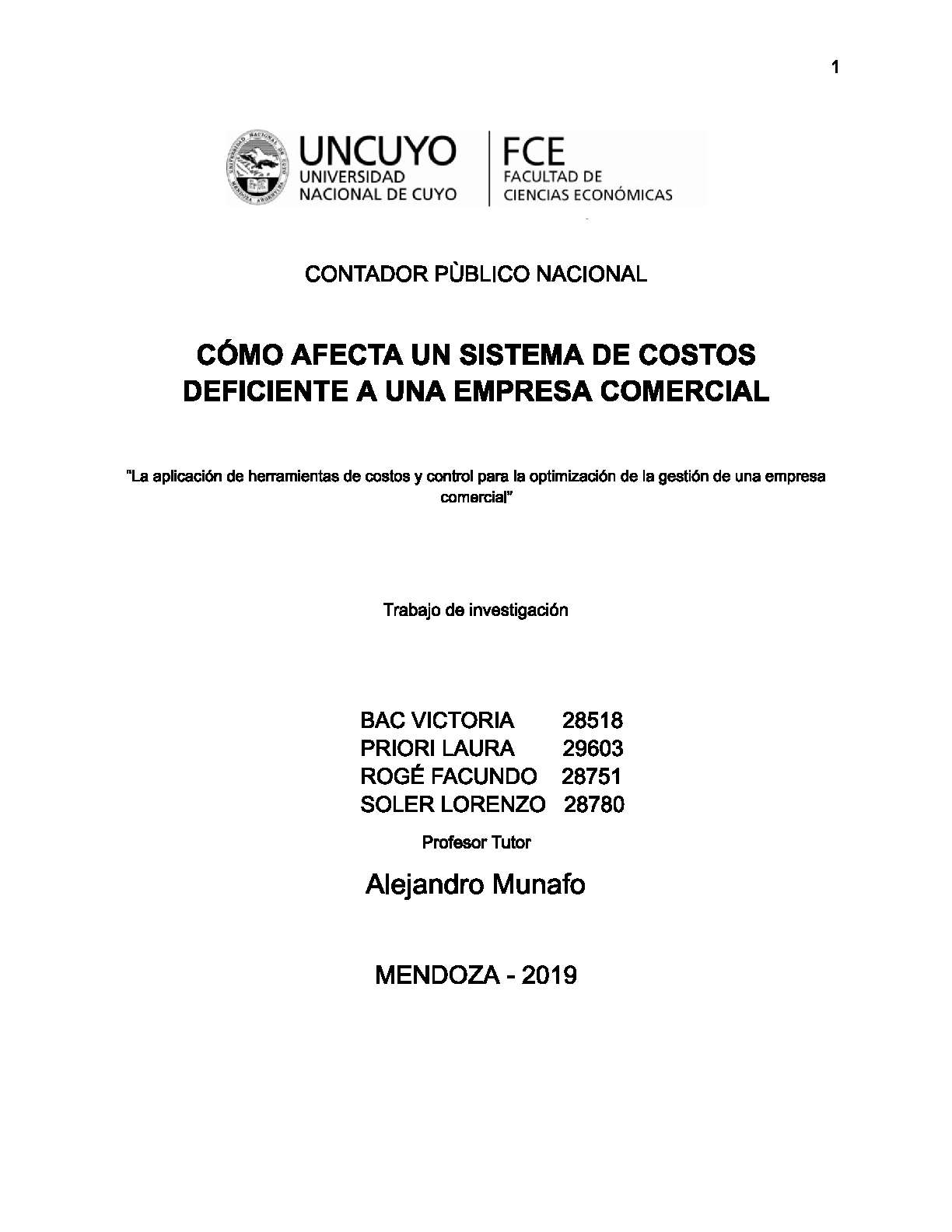 la aplicación de herramientas de costos y control para la optimización de la gestión de una empresa comercial