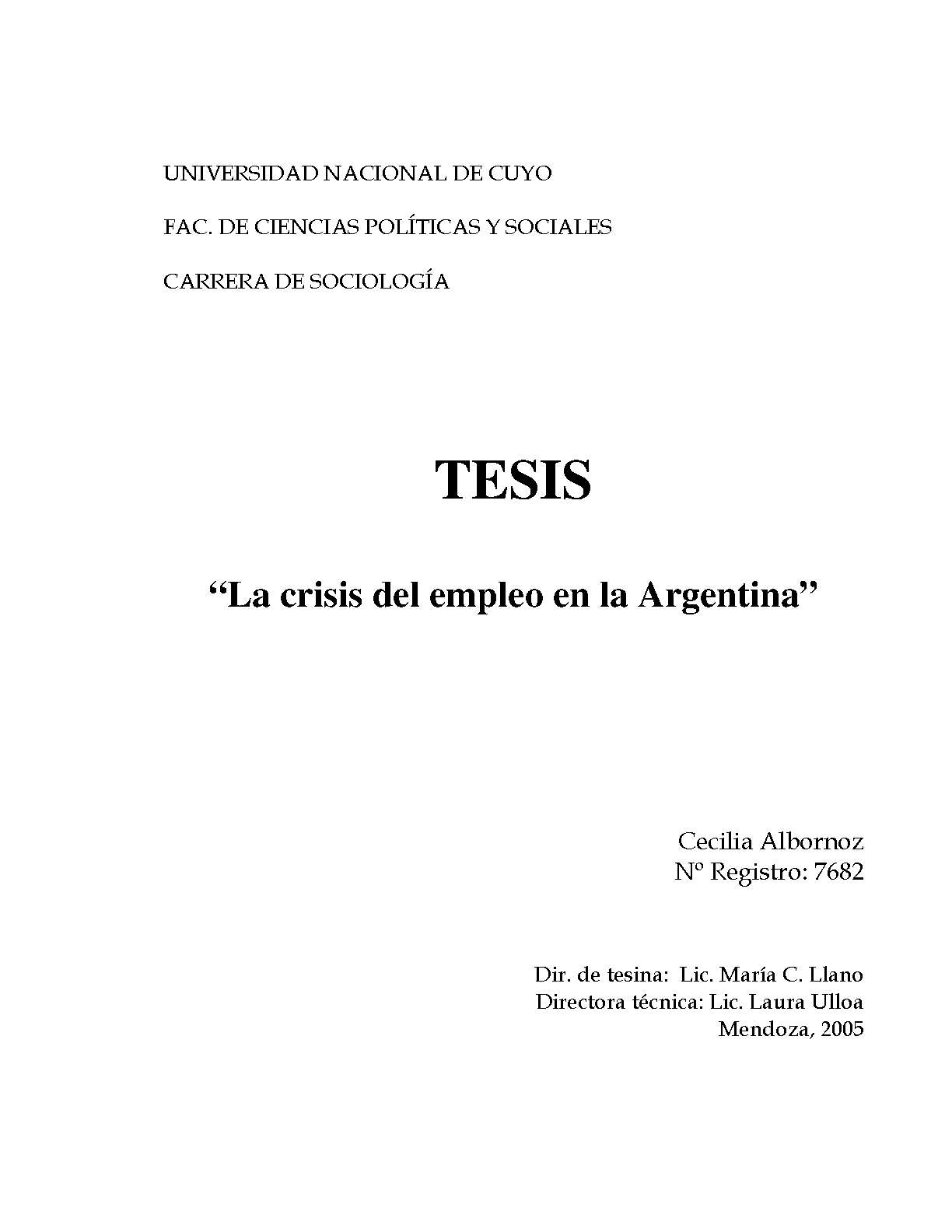 MENDOZA (ARGENTINA) - DESEMPLEO - EMPLEO - EXCLUSIÓN SOCIAL - POBREZA - NEOLIBERALISMO - AJUSTE ESTRUCTURAL - MODELO ECONÓMICO - POLÍTICA SOCIAL - INTEGRACIÓN SOCIAL