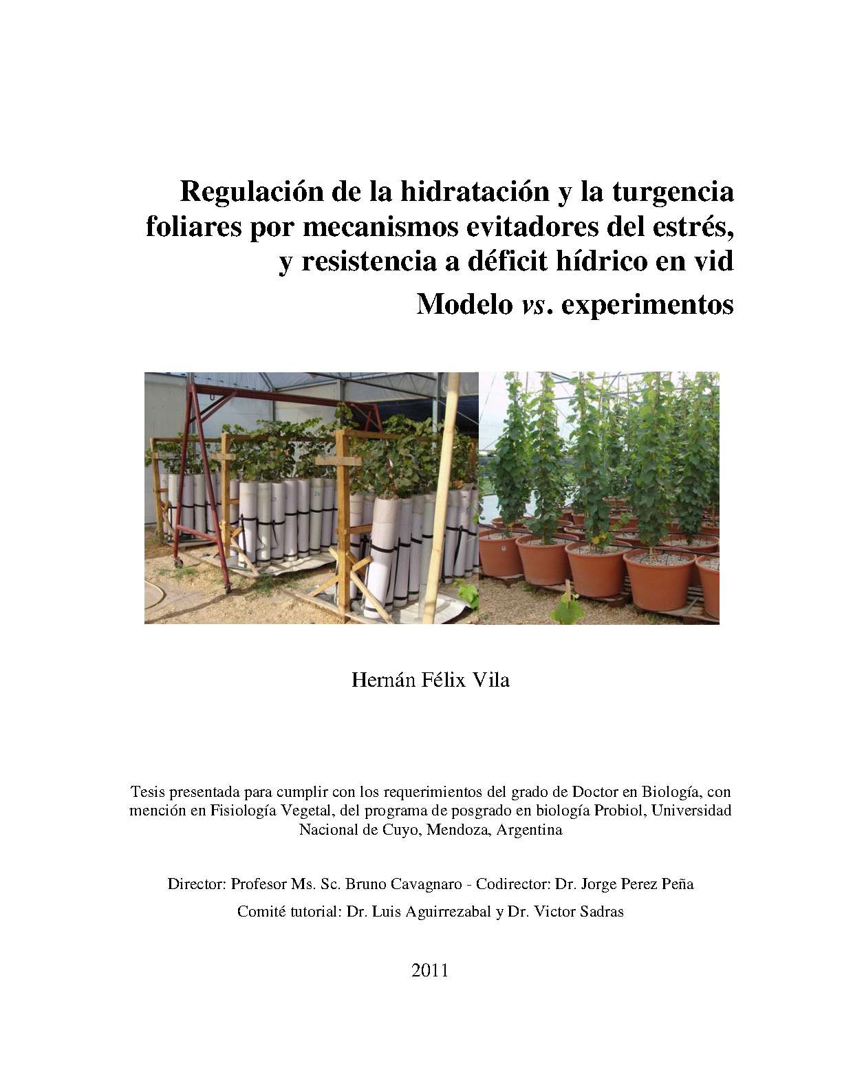 Vila, Hernán. (2011). Regulación de la hidratación y la turgencia foliares por mecanismos evitadores del estrés, y resistencia a déficit hídrico en vid: modelo vs. experimentos (Tesis de Doctorado). Mendoza, Universidad Nacional de Cuyo. Facultad de Ciencias Agrarias , Universidad Nacional de Cuyo. Facultad de Ciencias Médicas .