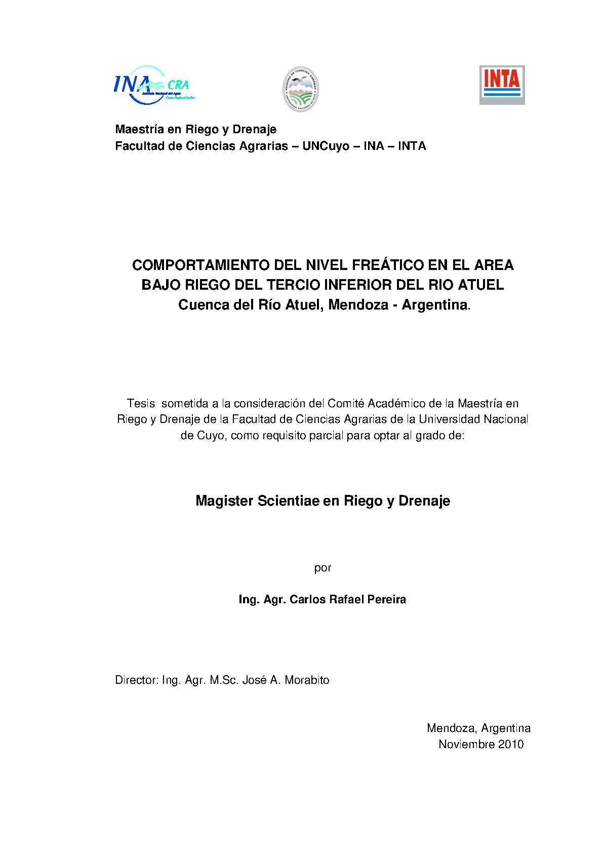 Comportamiento del nivel freático en el área bajo riego del tercio inferior del Río Atuel