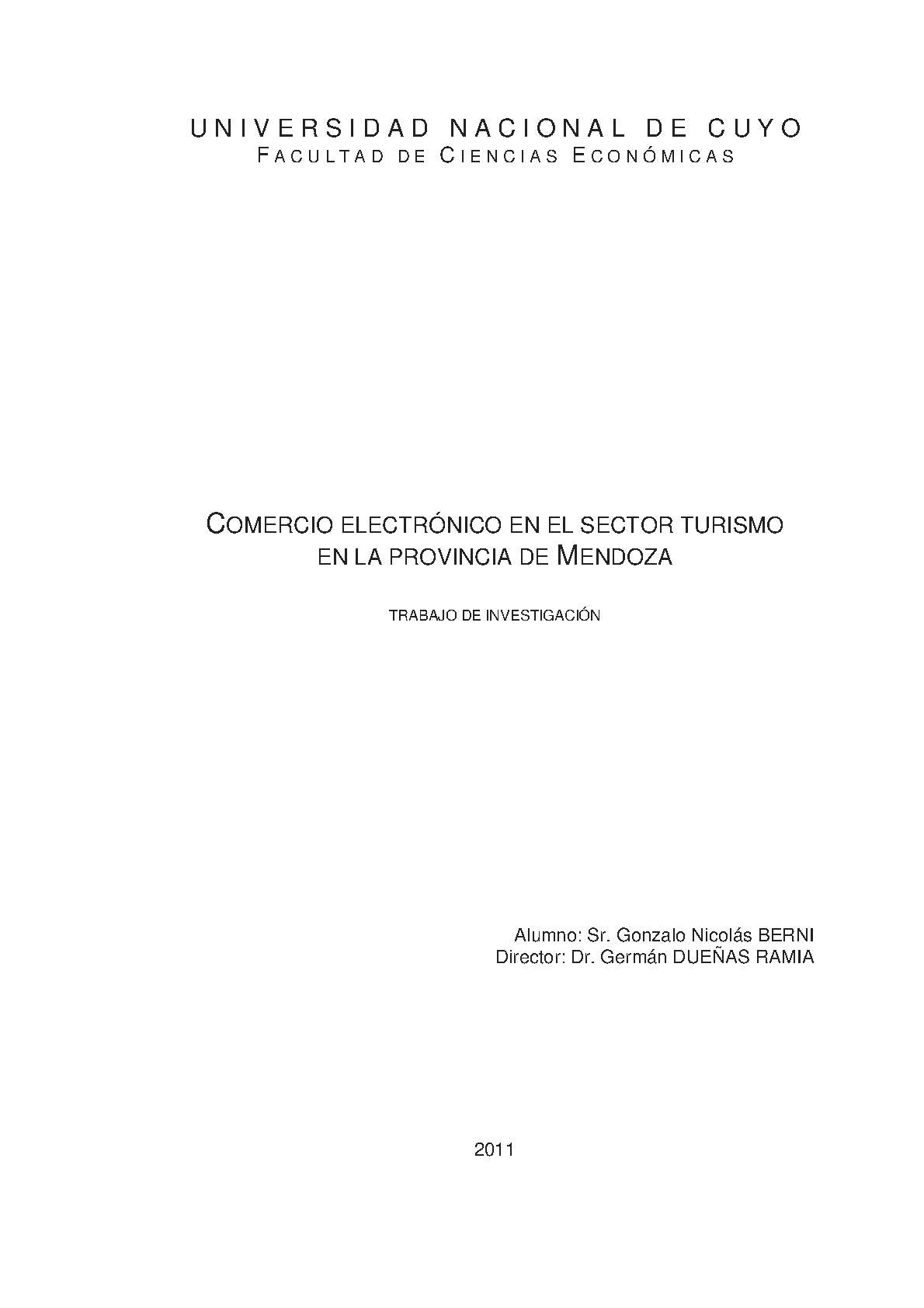 Berni, Gonzalo Nicolás. (2011). Comercio electrónico en el sector turismo en la provincia de Mendoza: (Tesina de grado). Mendoza, Universidad Nacional de Cuyo. Facultad de Ciencias Económicas.