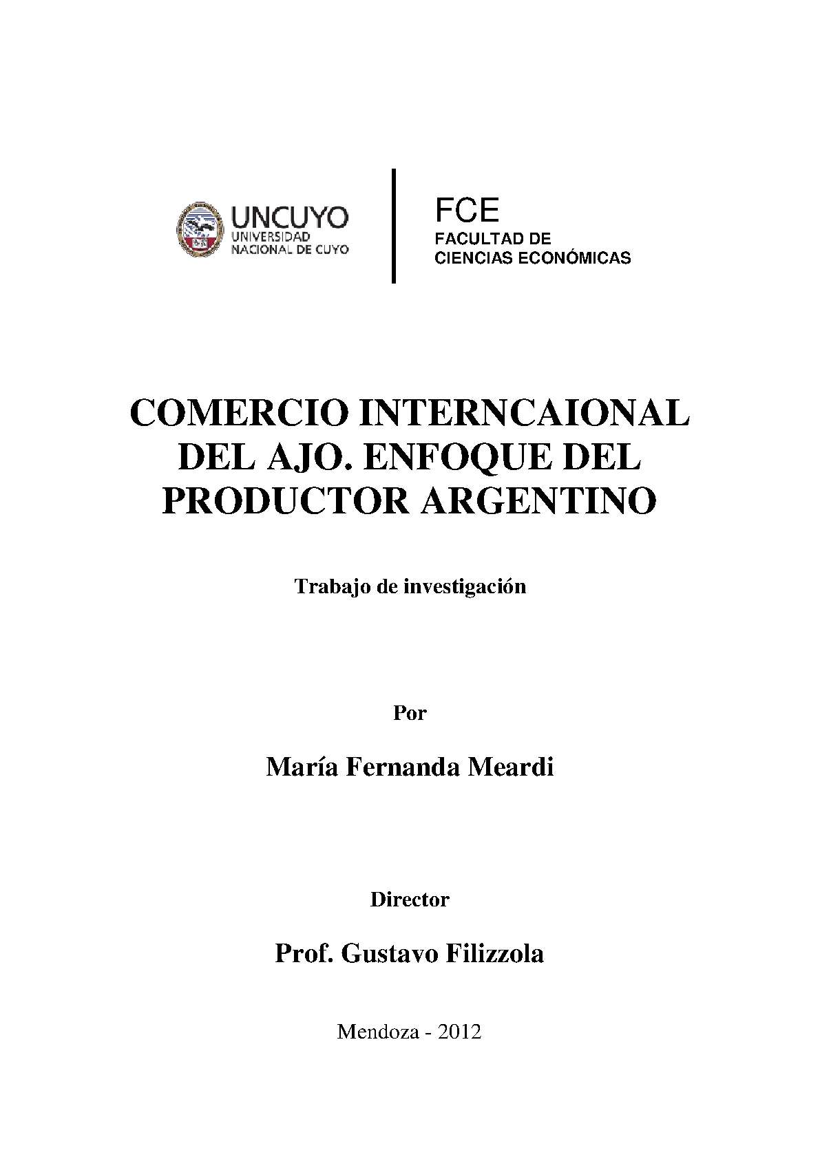Meardi, María Fernanda. (2012). Comercio internacional del ajo: enfoque del productor argentino (Trabajo final de grado). Mendoza, Universidad Nacional de Cuyo. Facultad de Ciencias Económicas.