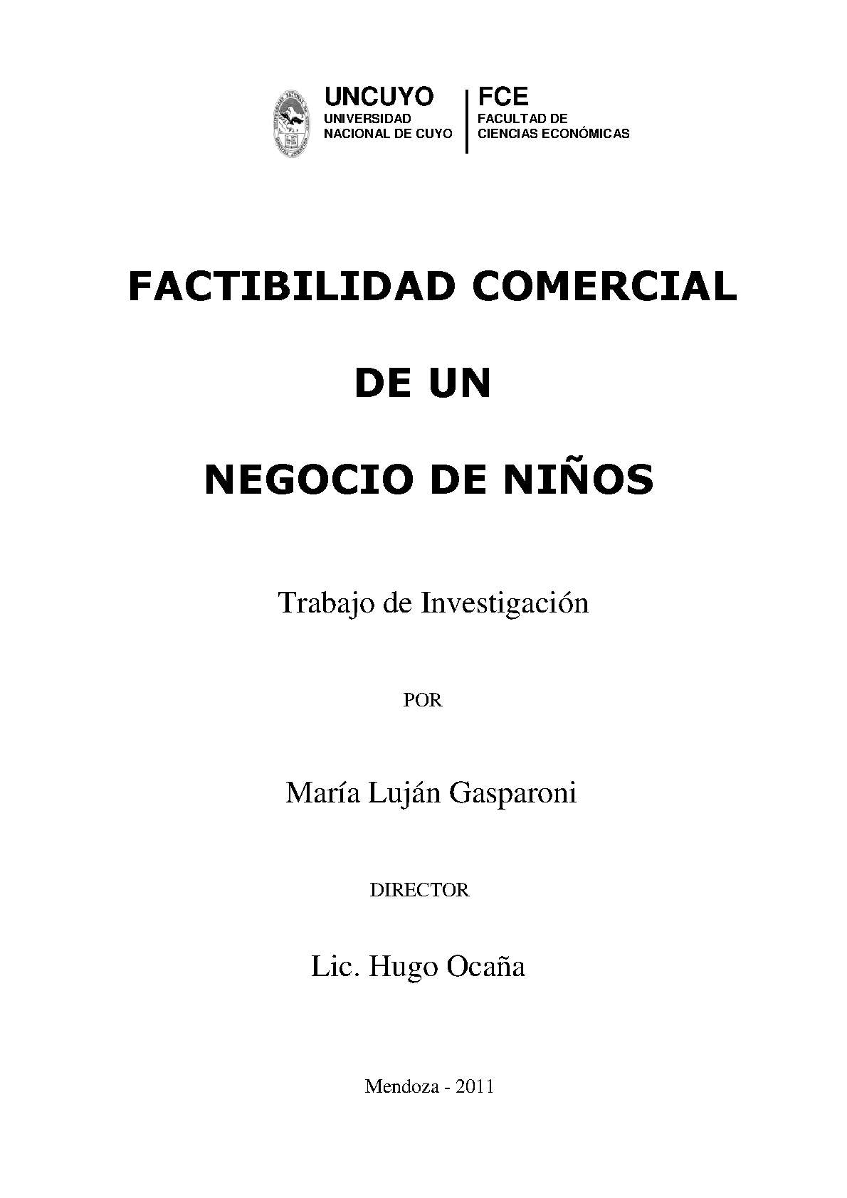 Gasparoni, María Luján. (2011). Factibilidad comercial de un negocio de niños: (Trabajo final de grado). Mendoza, Universidad Nacional de Cuyo. Facultad de Ciencias Económicas.