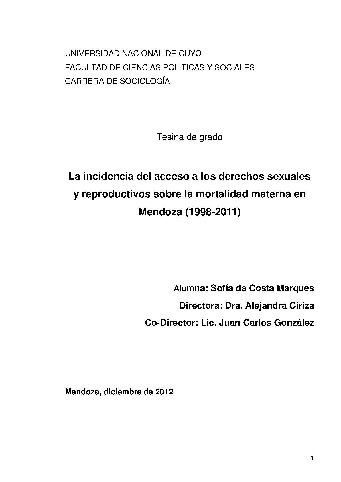 MENDOZA (ARGENTINA) - SALUD REPRODUCTIVA - DERECHOS REPRODUCTIVOS - MORTALIDAD MATERNA - ESTADO - MATERNIDAD - REGULACIÓN DE LA NATALIDAD - EDUCACIÓN SEXUAL - ABORTO - POLÍTICA GUBERNAMENTAL - REPRODUCCIÓN HUMANA