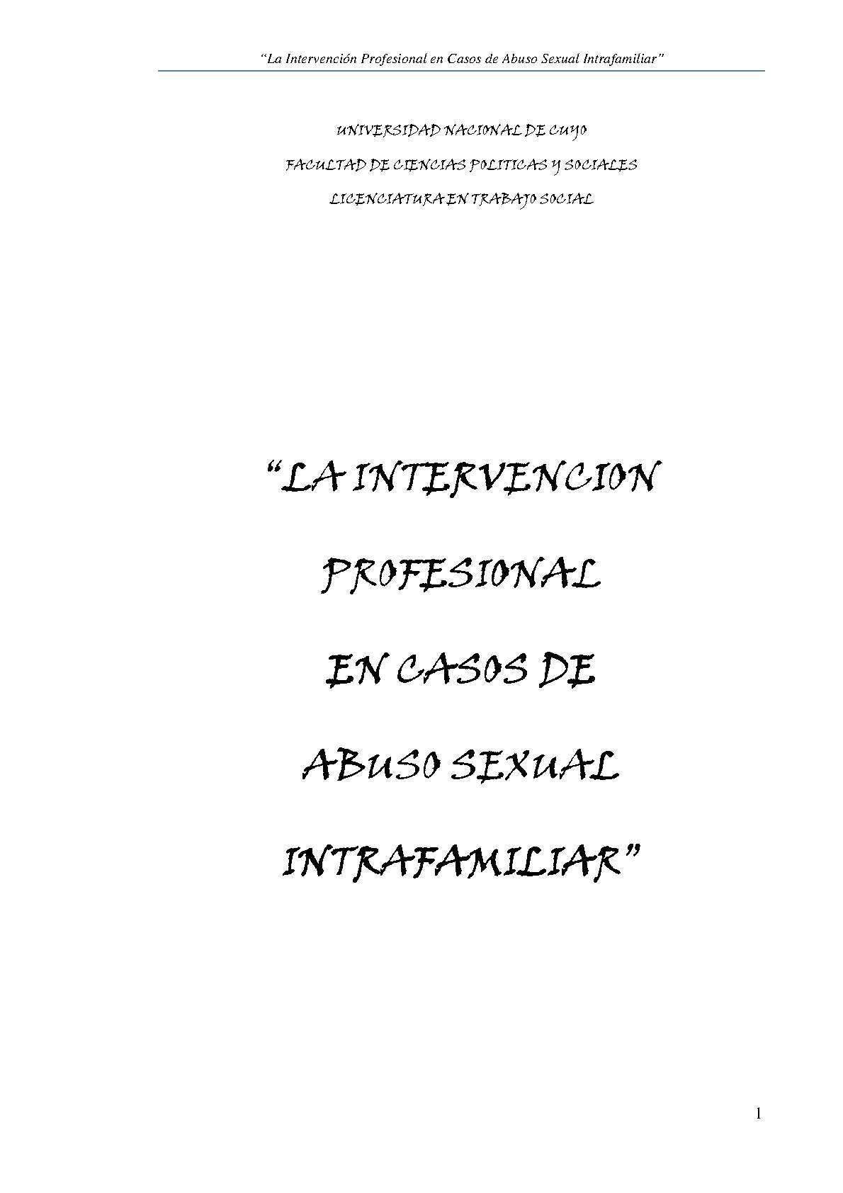 La intervención profesional en casos de abuso sexual intrafamiliar