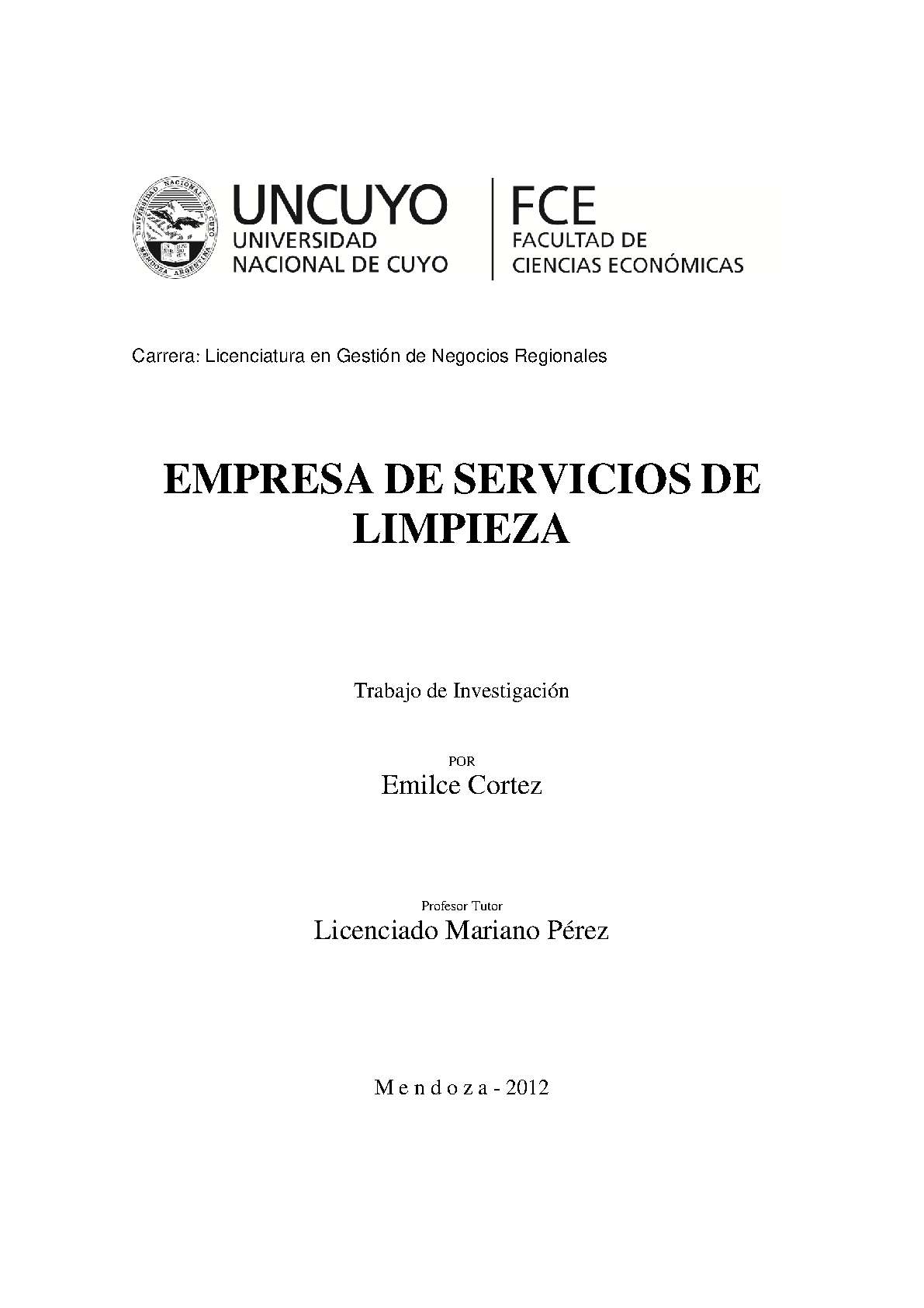 Actualmente en General Alvear no existe una empresa de limpieza que brinde un servicio integral y especializado, a las casas locales, con tecnología apropiada, a costos razonables y tiempos mínimos de servicios. Por dicha razón las empresas de nuestro medio se ven obligadas a contratar estas prestaciones a departamentos vecinos, sin tener opciones disponibles de alcance local. Esta tercerización a la distancia crea inconvenientes a nuestros empresarios al momento de realizar reclamos por disconformidad en cuanto a la calidad del servicio y en cuanto al abastecimiento de insumos básicos de higiene. El hecho radica en que no existe un contacto directo con las personas responsables de las empresas prestadoras de limpieza, y las supervisiones son poco frecuentes, justamente debido a que los supervisores no residen en la zona. Esto además implica un escaso control de las tareas realizadas y del personal operario que las desempeña. Consecuentemente ante la inexistencia de una empresa prestadora de servicios de limpieza establecida en la zona se vislumbra una necesidad en el rubro servicios que puede ser cubierta con un emprendimiento de negocios que apunte a dicho sector. Es por ello que se analizará en el presente trabajo de investigación la rentabilidad económica que se puede obtener con el emprendimiento de un negocio dedicado a la prestación de servicios de limpieza destinado a satisfacer las necesidades de nuestro mercado local.