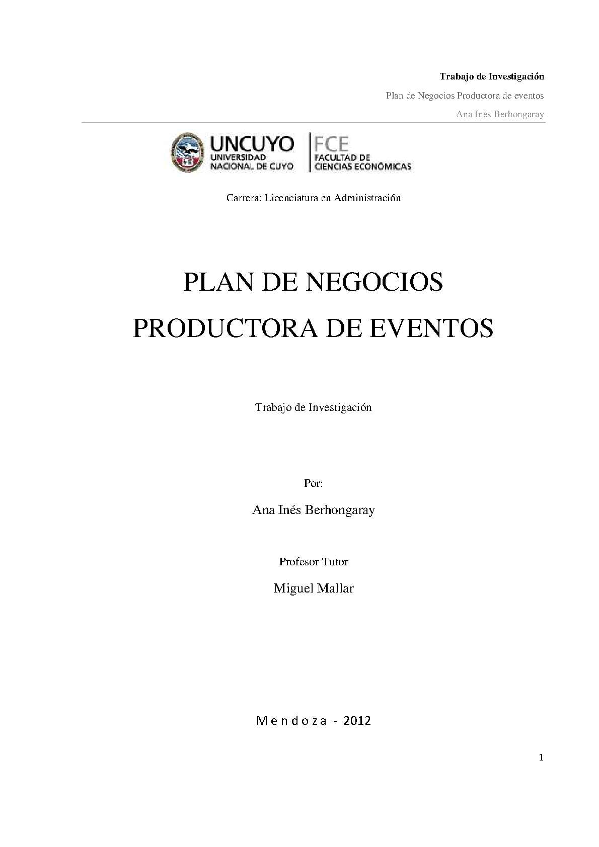 Plan de negocios productora de eventos