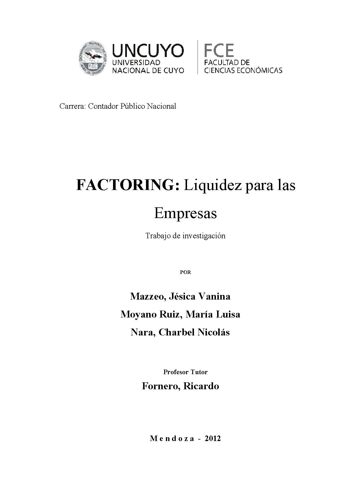 factoring en base al riesgo tomado por la empresa que ofrece el servicio. Por otra parte se mostrarán