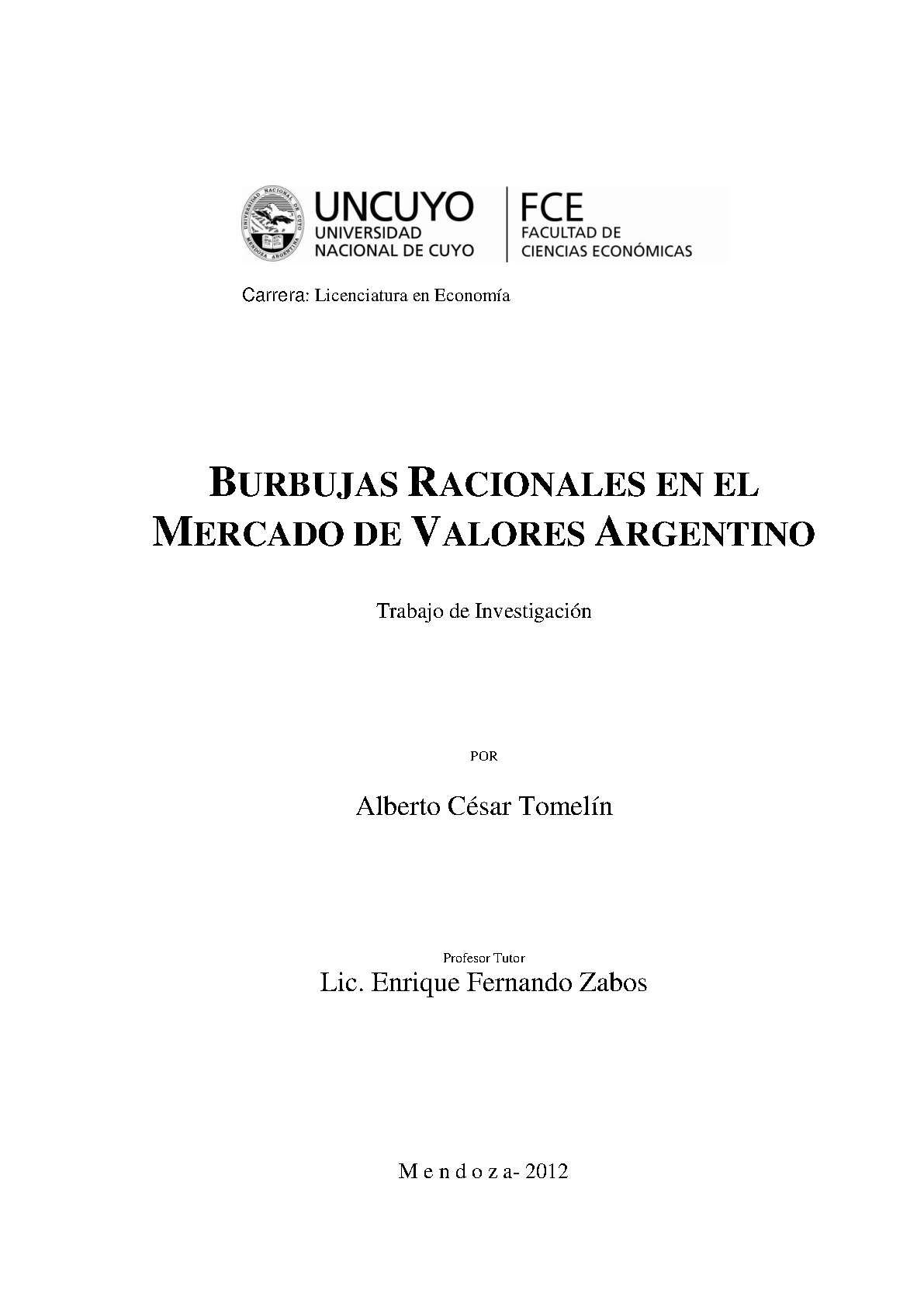 Desde el surgimiento de los mercados de valores, han existido periodos con importante aumento en los precios de sus activos, que luego se han atribuido a la presencia de burbujas especulativas. Entre los más conocidos se encuentran la manía de los tulipanes en Holanda a principios del siglo XVII, donde un bulbo de tulipán llegó a valer 24 toneladas de trigo, la ola especulativa en Wall Street que terminó en el “crash" de 1929, la burbuja tecnológica en el Nasdaq que estalló a principios de siglo. Estos acontecimientos motivan a deliberar sobre la racionalidad de los precios de los títulos que se negocian en los mercados. Bajo la hipótesis de mercados eficientes, los precios de las acciones varían solamente si los inversores reaccionan a la nueva información relacionada con los fundamentos. Esto significa que los precios siguen una martingala y que cualquier desvió sistemático en relación al valor fundamental debe ser considerado una burbuja. Si existe una burbuja especulativa, el precio de mercado tendrá dos componentes: el precio racional o valor fundamental y la burbuja especulativa. Las razones por las cuales se paga un precio mayor al racional van desde la creencia que existirá un “tonto más grande" que comprará ese activo en el futuro, excesos de confianza o simplemente por un comportamiento de manada de los agentes involucrados. Las burbujas en los precios de los activos pueden ser relevantes en economías emergentes porque pueden acarrear efectos colaterales (como apreciación de su moneda) y potencial reversibilidad. Una burbuja puntual en los precios de las acciones puede terminar acarreando excesiva inversión en capital y euforia seguida de “crash" y recesión. Muchos de los comienzos de crisis económicas o financieras estuvieron históricamente asociados a la formación de burbujas en los precios de los activos, como bien enseña la reciente burbuja en las propiedades inmobiliarias de Estados Unidos.