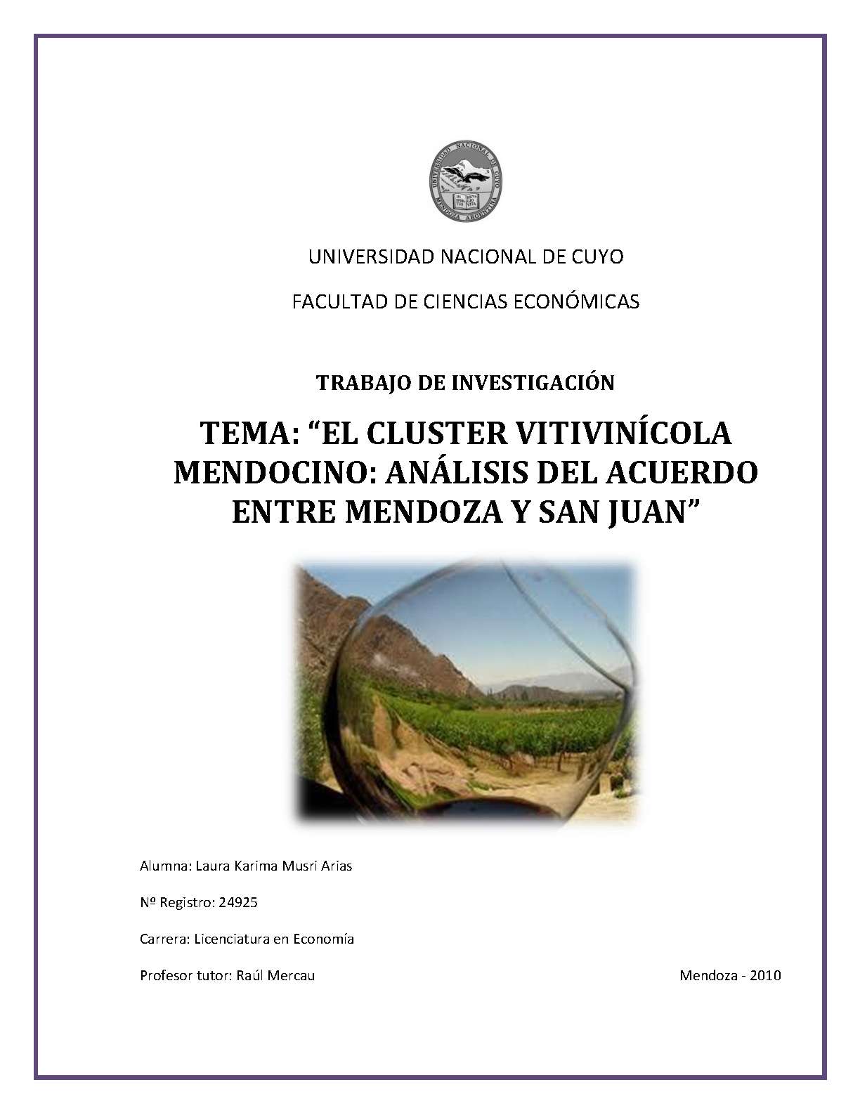 Musri Arias, Laura Karima. (2010). El cluster vitivinícola mendocino: análisis del acuerdo entre Mendoza y San Juan (Trabajo final de grado). Mendoza, Universidad Nacional de Cuyo. Facultad de Ciencias Económicas.
