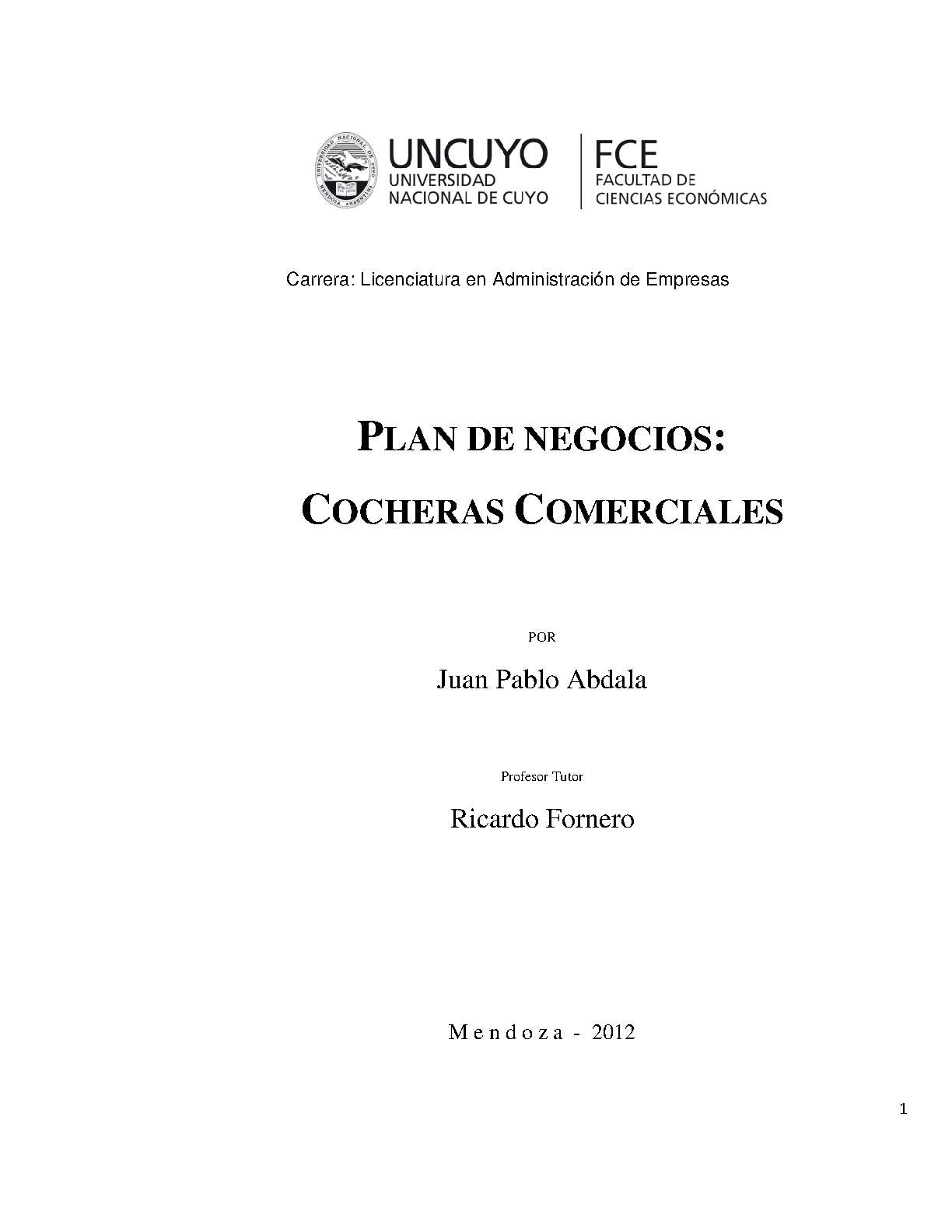 Abdala, Juan Pablo. (2012). Plan de negocios: cocheras comerciales (Trabajo final de grado). Mendoza, Universidad Nacional de Cuyo. Facultad de Ciencias Económicas.