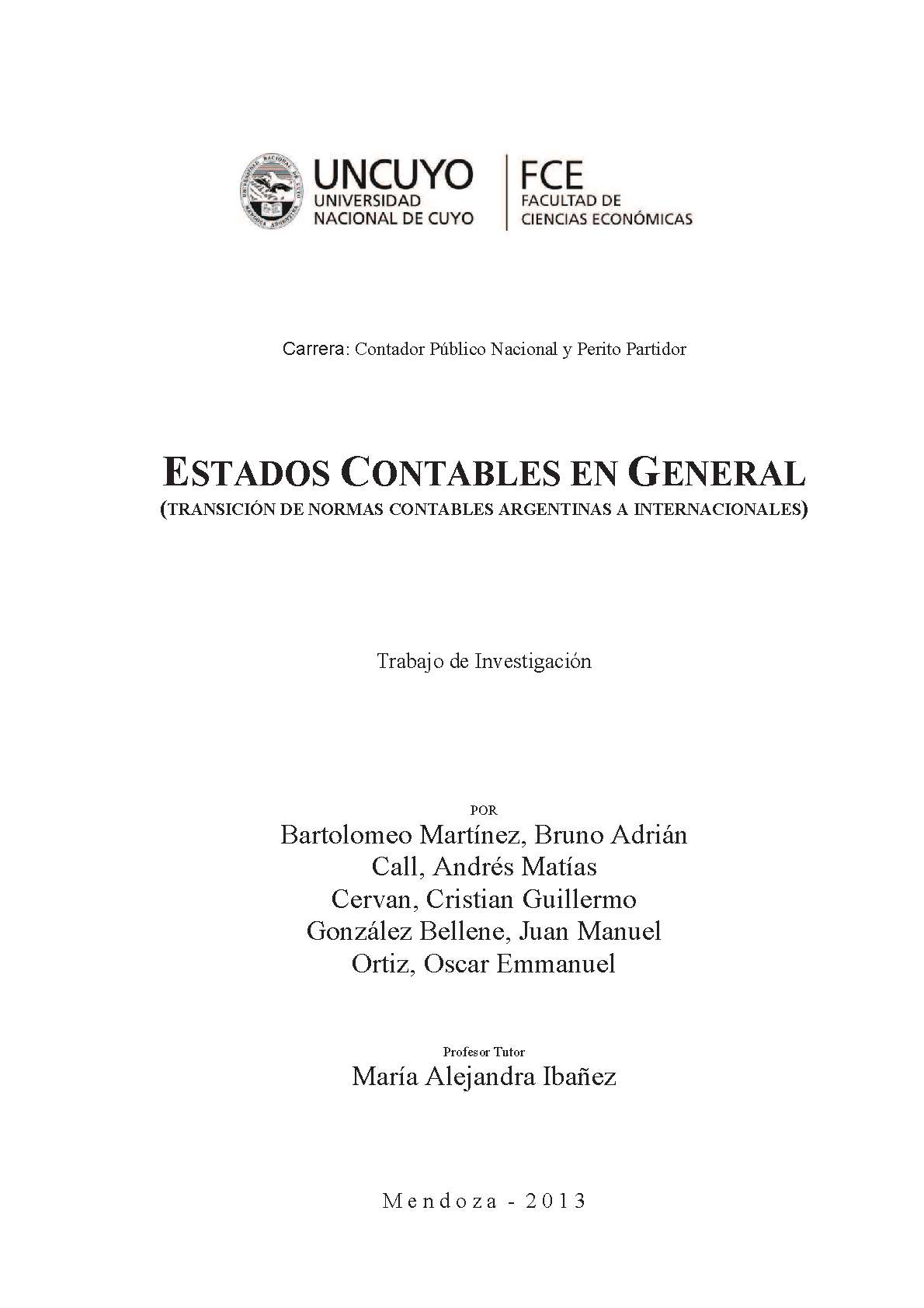 Debido a que este trabajo está dirigido a estudiantes avanzados y profesionales en ciencias económicas que quieran o necesiten interiorizarse en la implementación de esta nueva norma, hemos intentado facilitar la comprensión del trabajo dando una explicación de las normas contables nacionales para poder visualizar mejor cual es la transición h