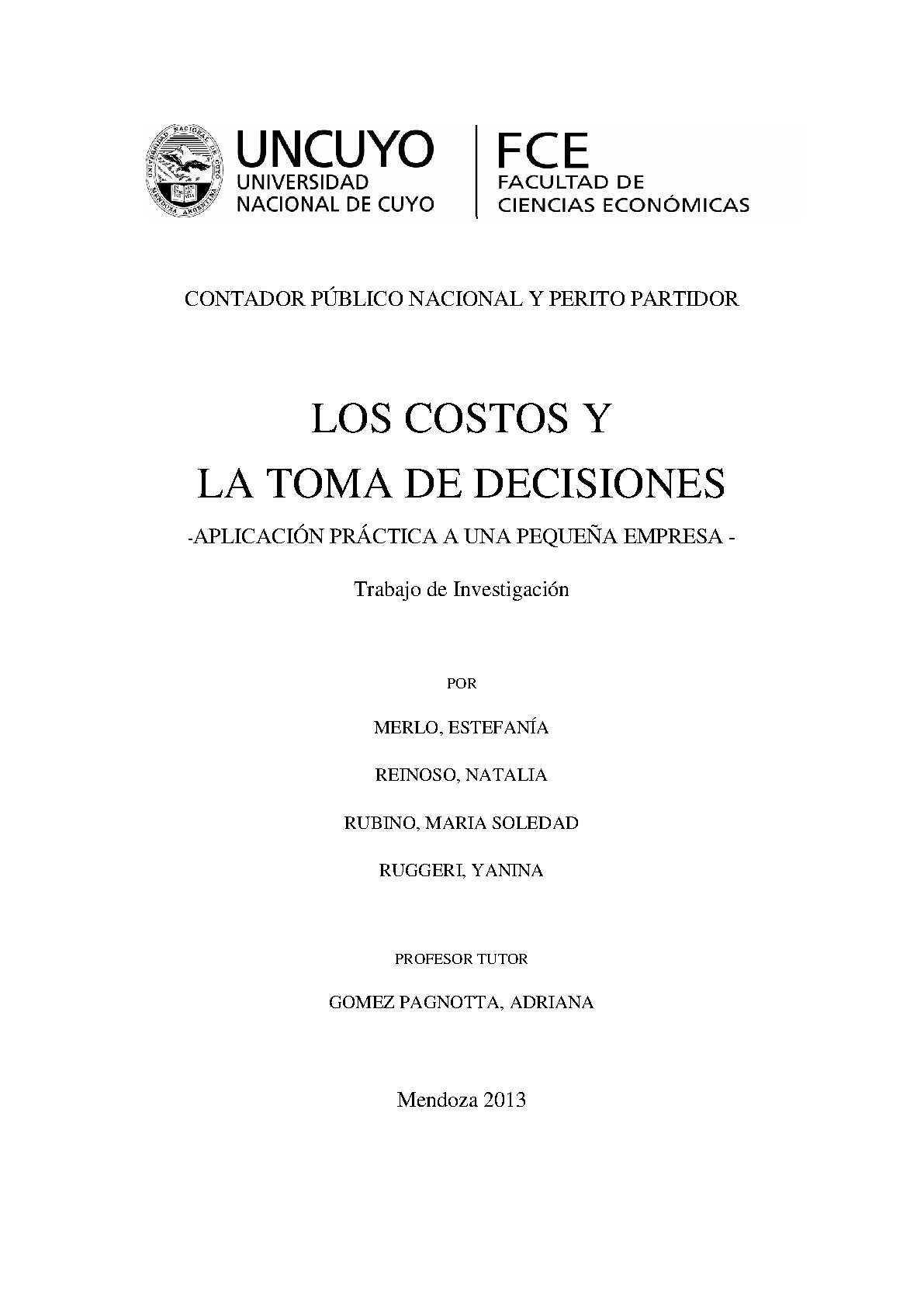 Este trabajo está orientado a los propietarios de pequeñas empresas que ante la falta de conocimientos específicos en costos, no comprenden que actualmente la determinación de los costos cumple un rol esencial en el análisis de la situación económica pero principalmente ayudan a facilitar y optimizar la toma de decisiones.